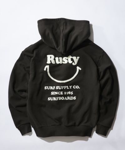 フロントには胸元に小さくロゴをあしらい、シンプルながらRUSTYらしい遊び心をプラス。