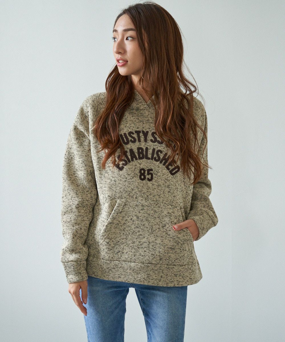 あったか裏起毛のニットフリースプルオーバーパーカー。