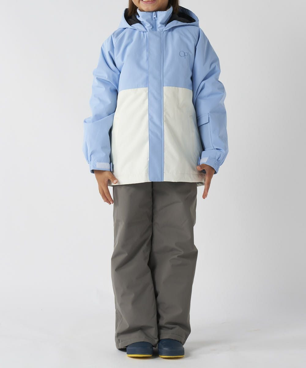 ジャケット&パンツのスキー・スノーボードウェア上下セットです。スノボーやスキー、雪遊びなどウインタースポーツで大活躍!ゲレンデで目を惹く、バイカラーデザインです。サスペンダーで調整可能なので、成長に合わせて長く着られます。左袖には便利なパスケース付き。お子様が安心して着用できる、ママもうれしい機能付き!