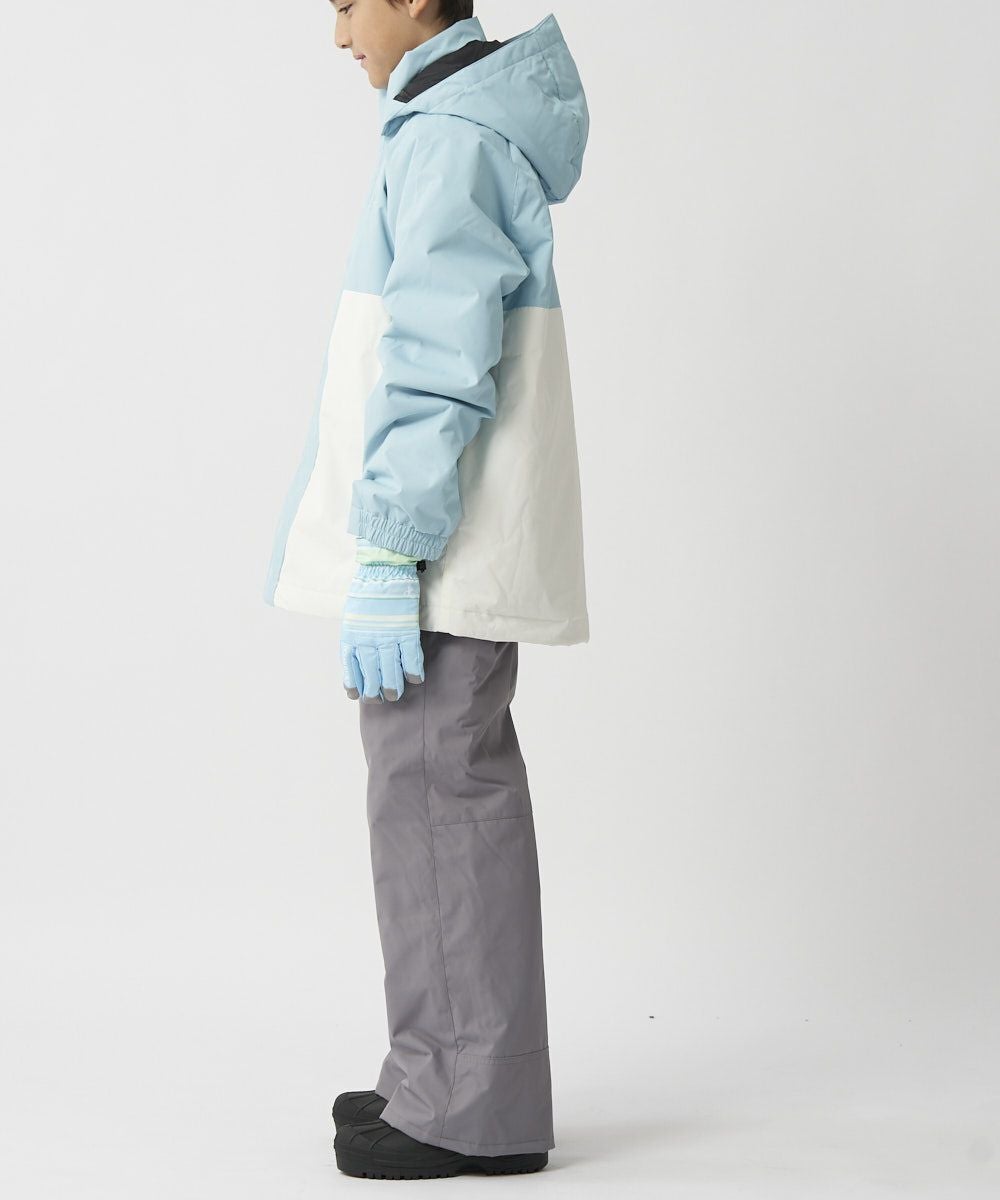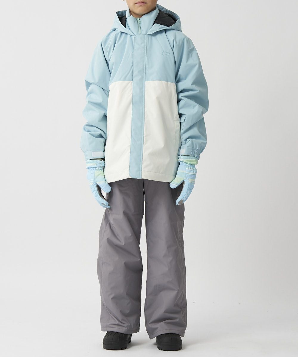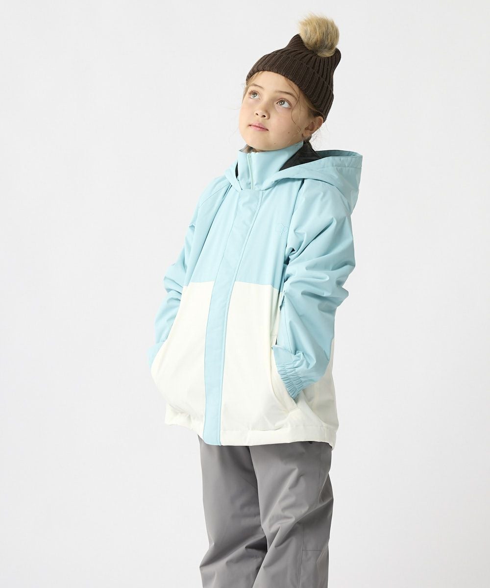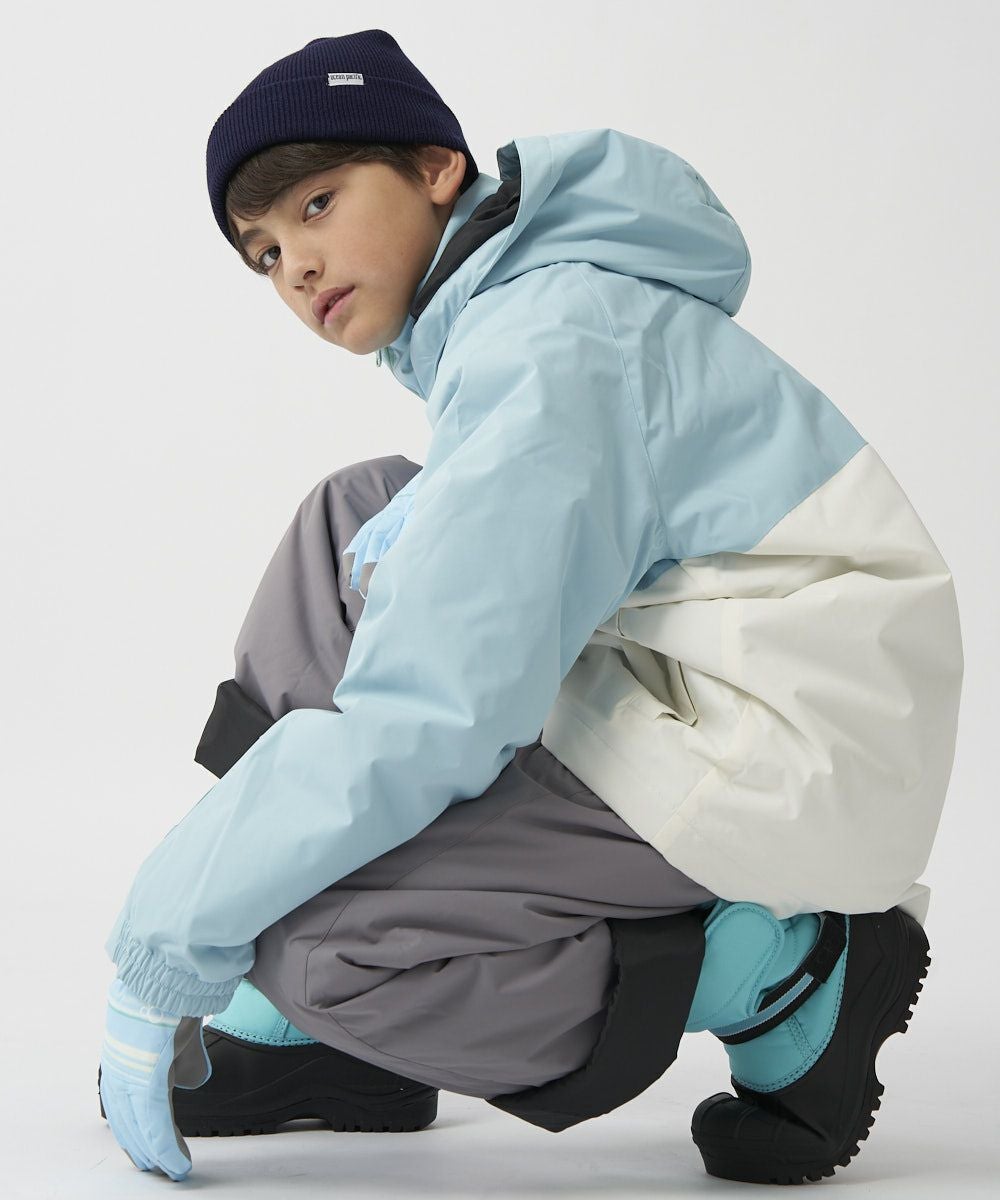 ジャケット&パンツのスキー・スノーボードウェア上下セットです。スノボーやスキー、雪遊びなどウインタースポーツで大活躍!ゲレンデで目を惹く、バイカラーデザインです。サスペンダーで調整可能なので、成長に合わせて長く着られます。左袖には便利なパスケース付き。お子様が安心して着用できる、ママもうれしい機能付き!