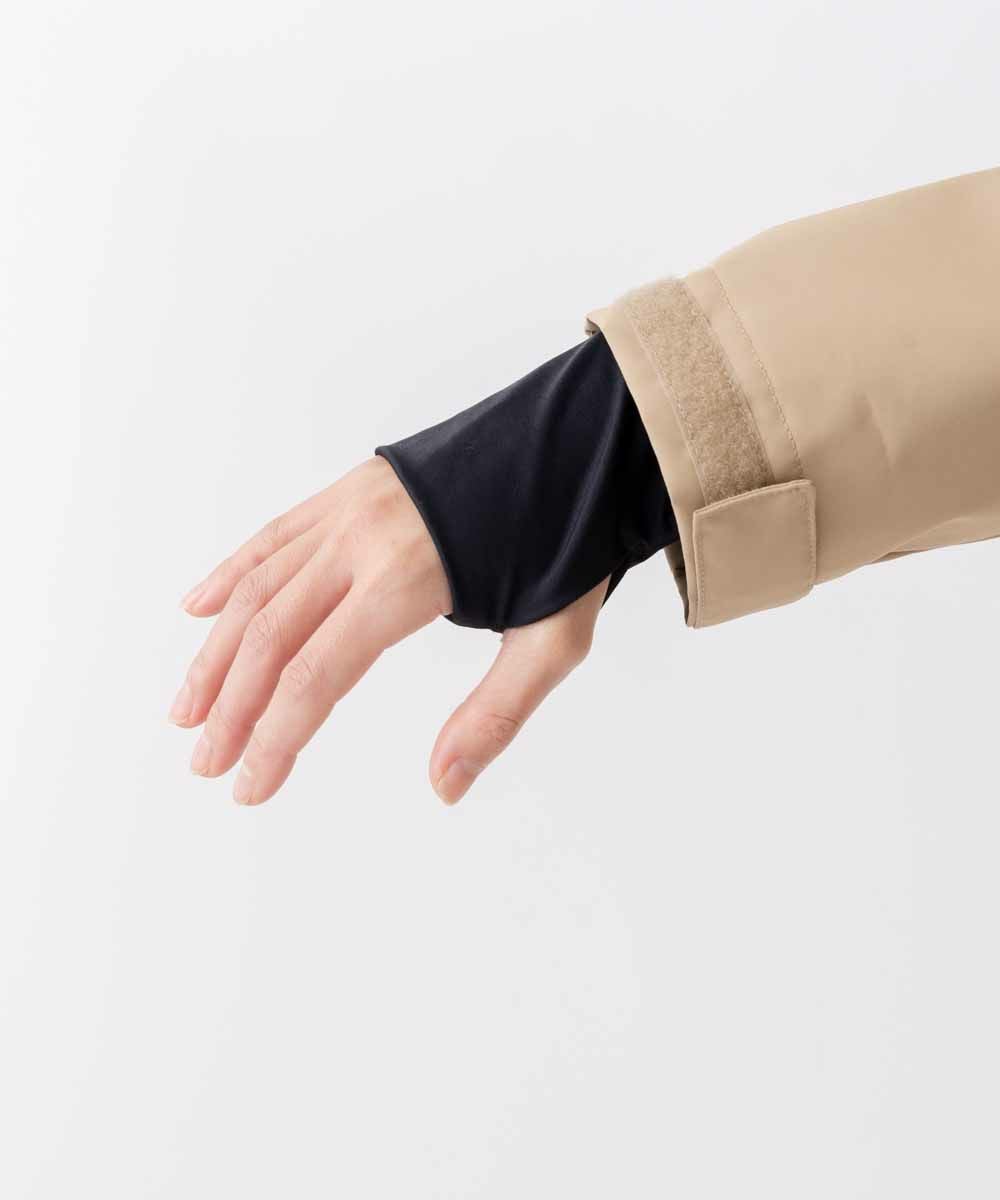 表地:ポリエステル100% 裏面:ポリウレタンラミネート ニット裏地:ポリエステル100% 布帛裏地:ポリエステル100%