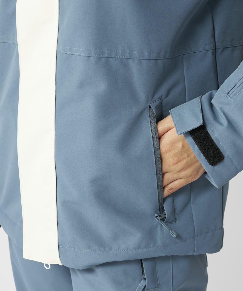 バイカラーな色切り替えデザインが魅力のレディーススノージャケット。耐水圧10000mlと透湿性5000gで蒸れにくく汗や湿気を効率的に排出し、快適性を確保。冬のアクティビティに最適。