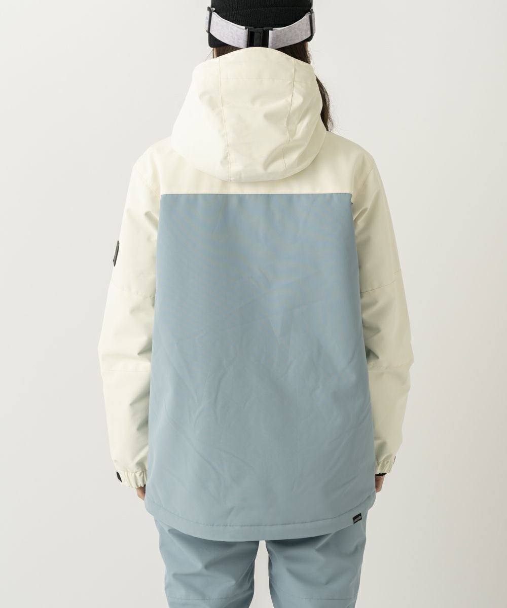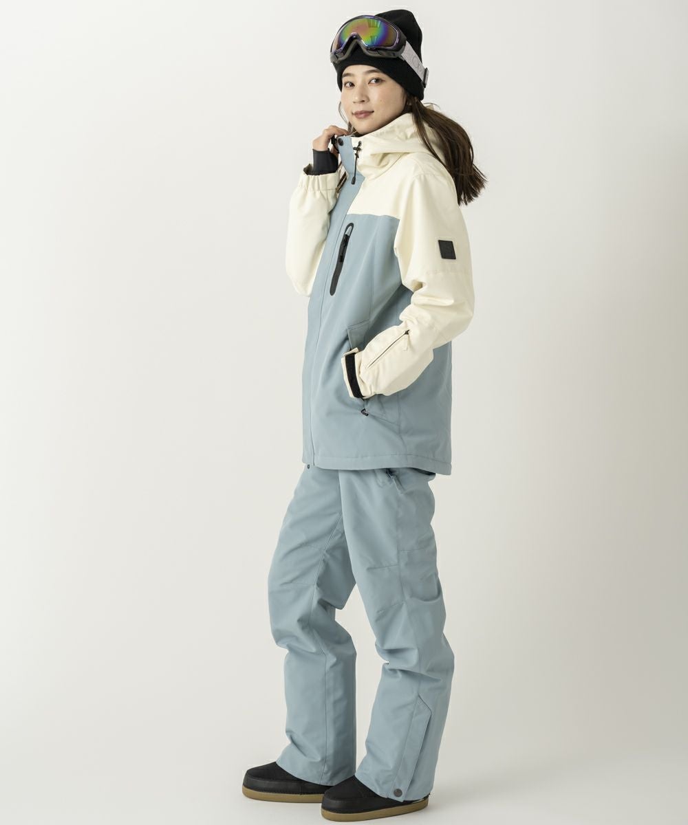 トレンドのワイドシルエットとバイカラーデザインが目を引く中綿入りスノーウェア。