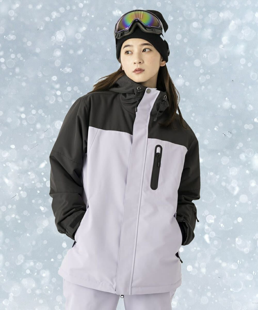 柔らかで上品なニュアンスカラーが、冬のゲレンデでもスタイリッシュな印象を演出します。