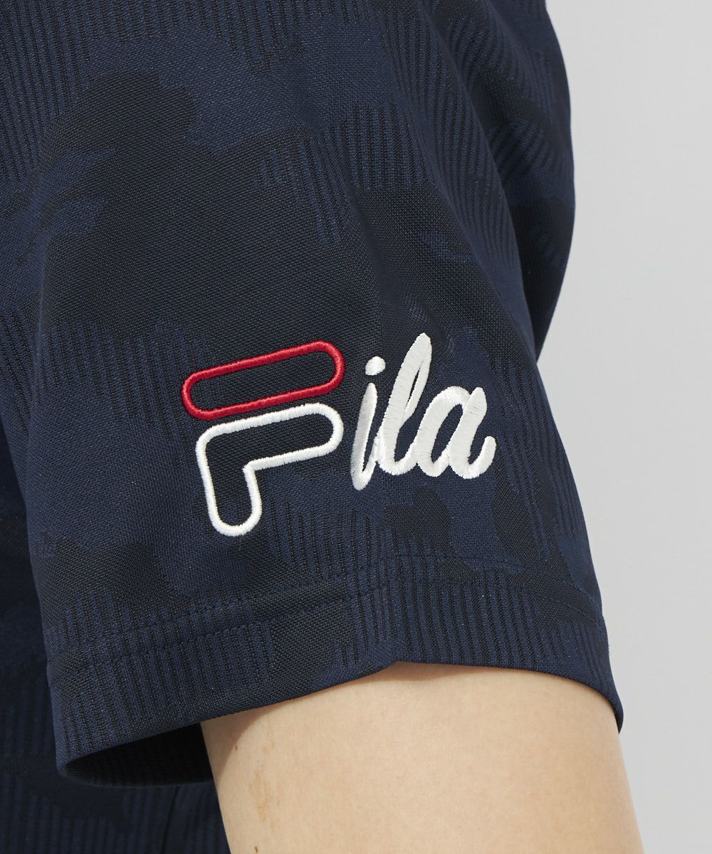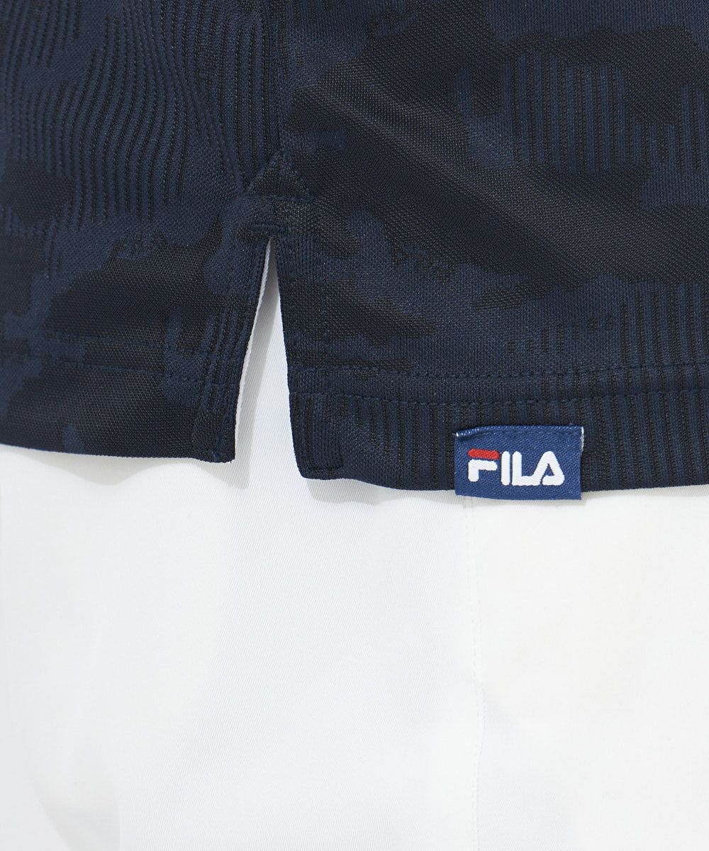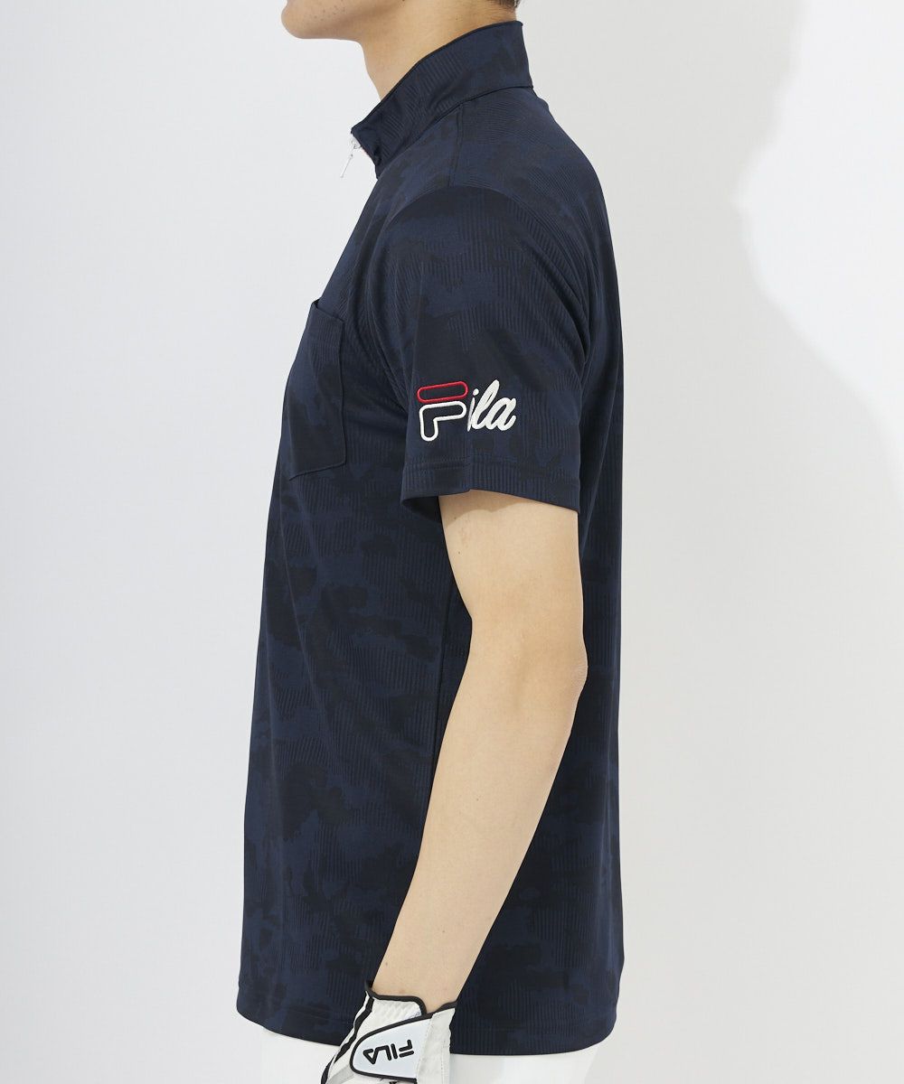 リサイクル素材を使用したジャガード素材のハーフZIPシャツ。衿付けのヘリテージストライプテープがアクセントになっています。裾のスリットがお腹周りのしわを軽減させます。