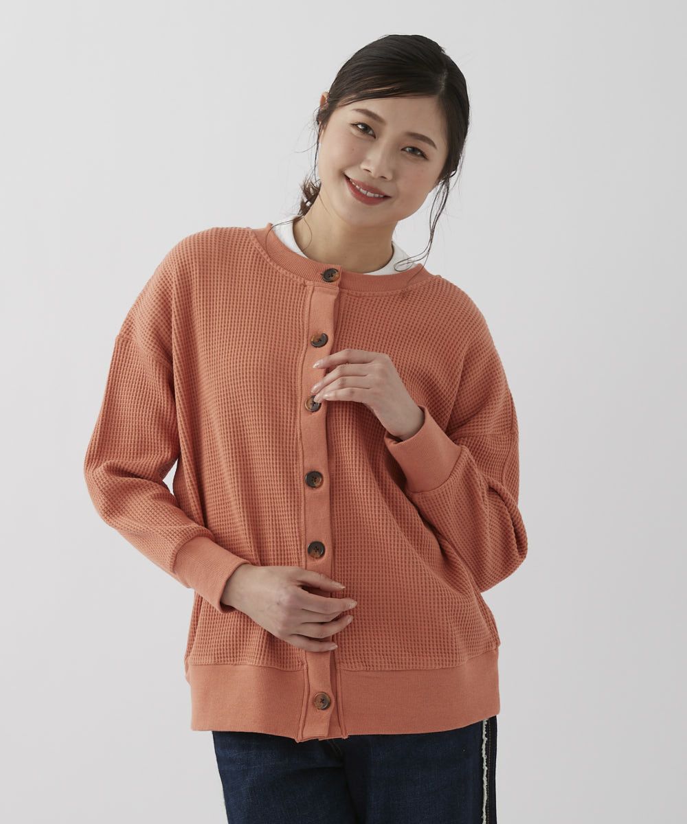 レディース 2WAYワッフルカーディガン