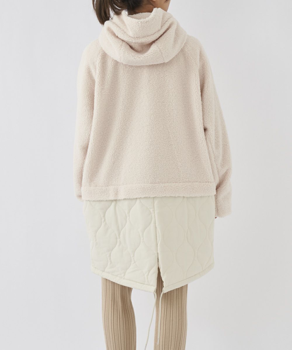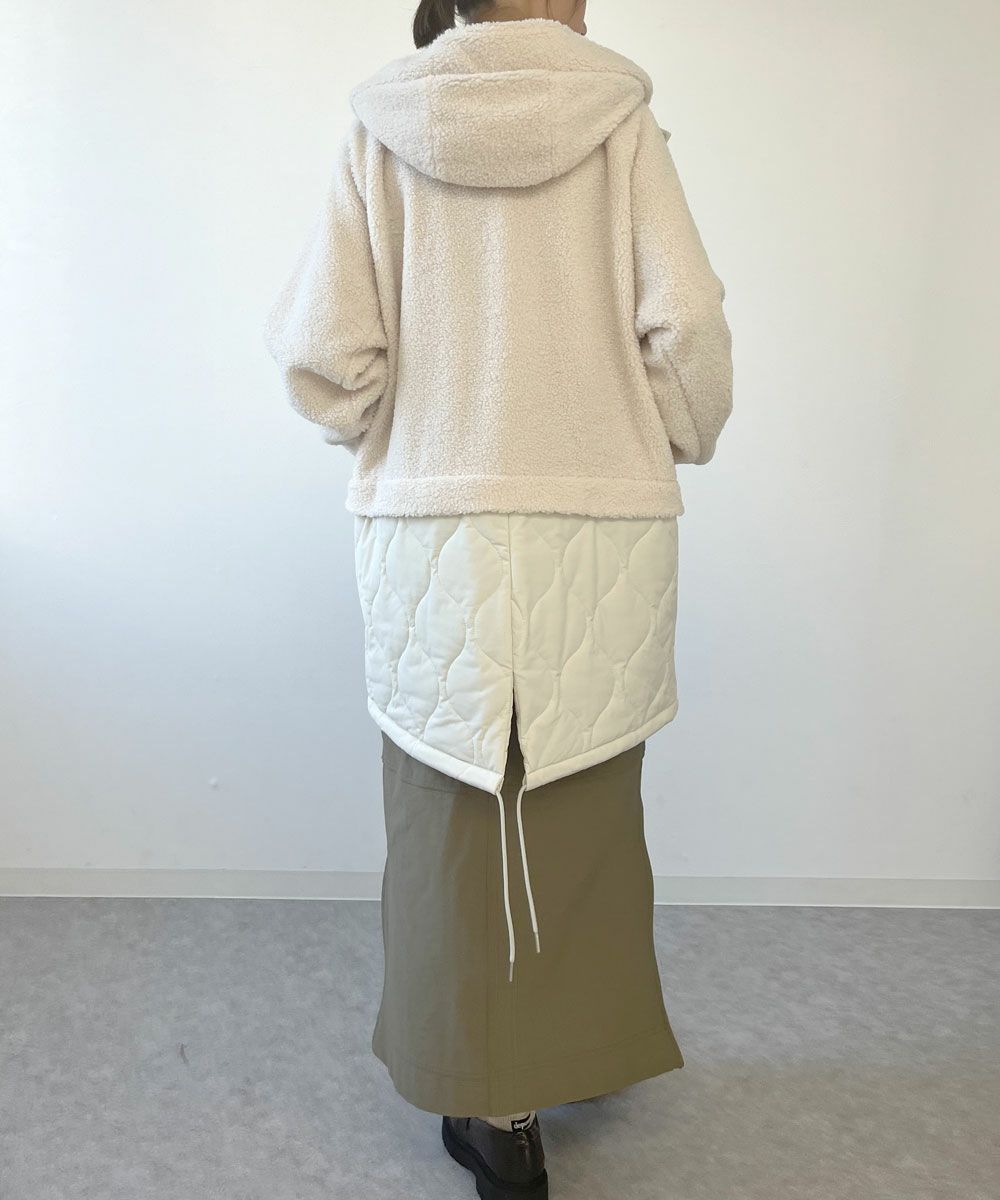 レディース ボア×キルト切り替え フード付き ロングコート