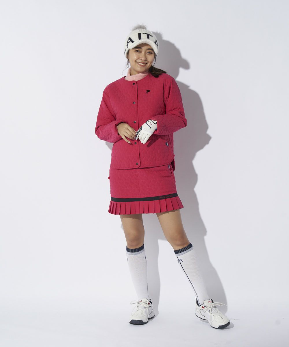レディース 中綿ノーカラーブルゾン/キルティング/ハート柄|4WAYストレッチ/撥水加工