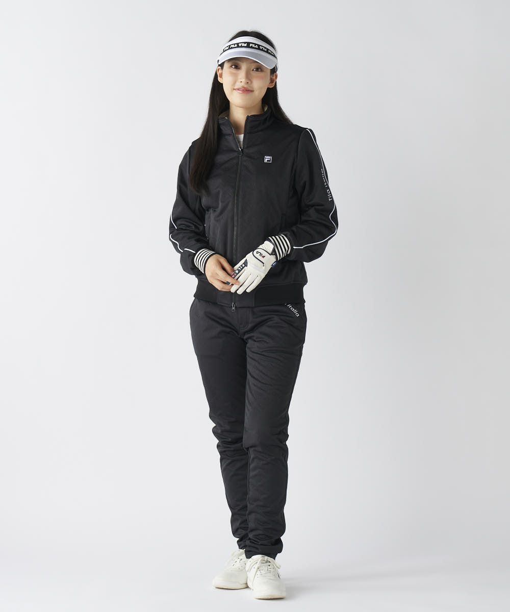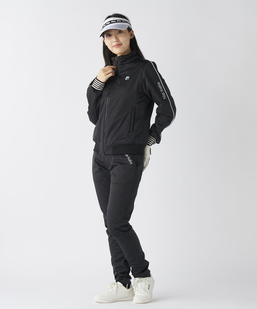 シンプルなデザインなので、柄物のボトムスにも合わせやすく、コーディネートの幅が広がります。機能的かつスタイリッシュなこの一着は、寒さに負けず、自信を持ってコースに立てるFILAらしい機能×ファッションの軸で完成されたアイテムです。