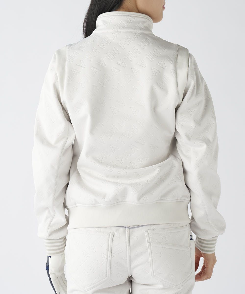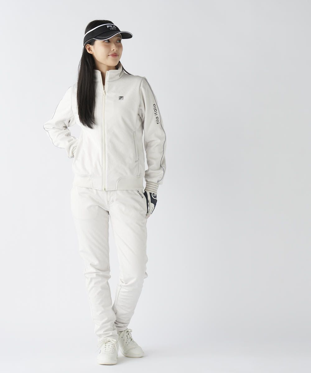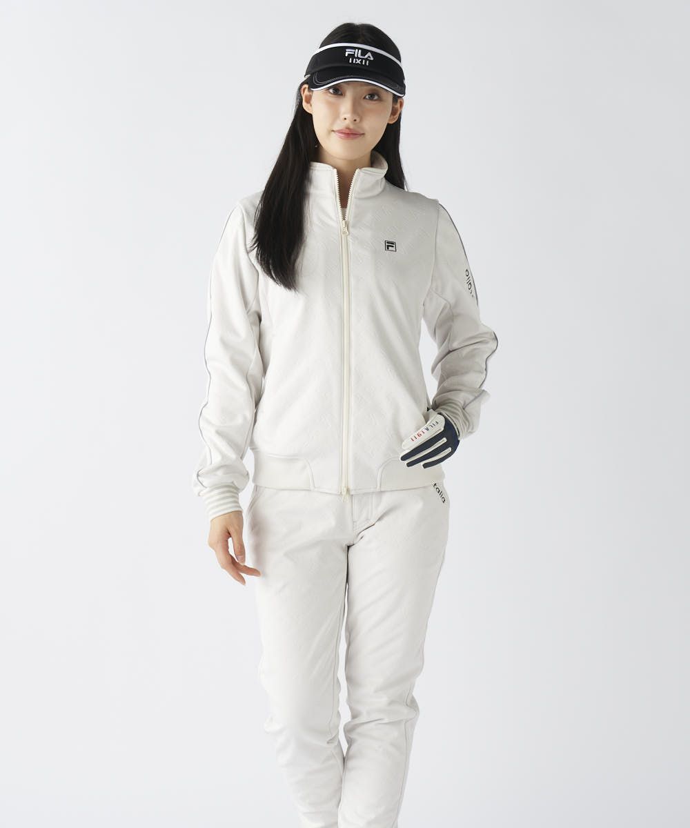 シンプルなデザインなので、柄物のボトムスにも合わせやすく、コーディネートの幅が広がります。機能的かつスタイリッシュなこの一着は、寒さに負けず、自信を持ってコースに立てるFILAらしい機能×ファッションの軸で完成されたアイテムです。
