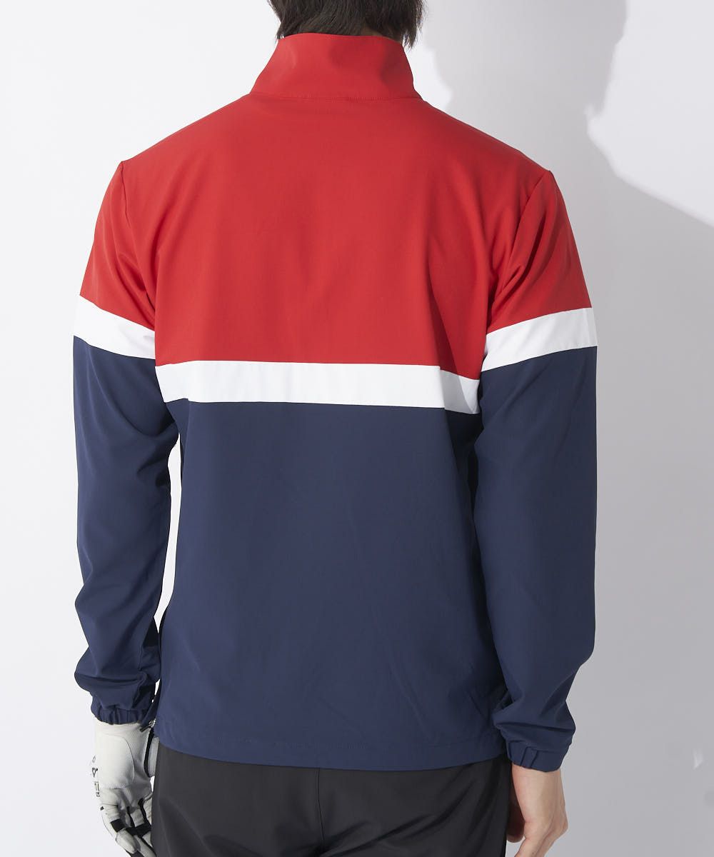 ストレッチ性に優れた軽量な素材を使用したハーフジップブルゾン。伝統のトリコロール切替配色になっています。少し肌寒くなってきた時期から長い間活躍できるアイテムです。