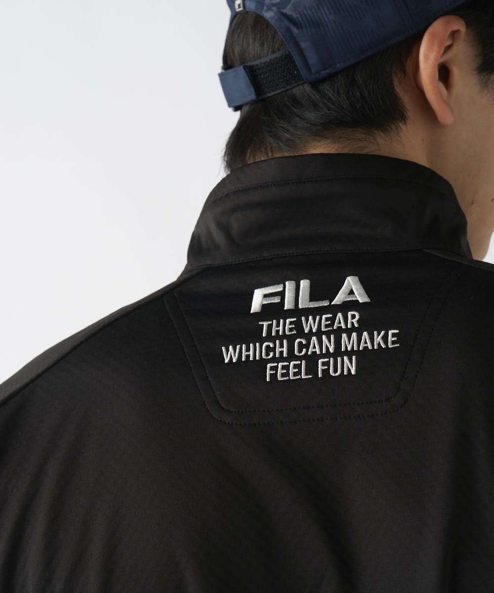 ミニマルでクリーンなデザインが、洗練された都会的なスタイルを演出。ラグランスリーブで肩周りをすっきり見せ、可動域を確保しています。袖口はストレッチバインダー仕様、後ろ裾はリブ仕立てで、風の侵入を防ぎながらスマートなフィット感をキープ。さりげないロゴ刺繍が、FILA GOLFの品格を漂わせます。