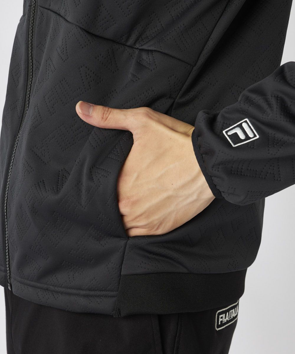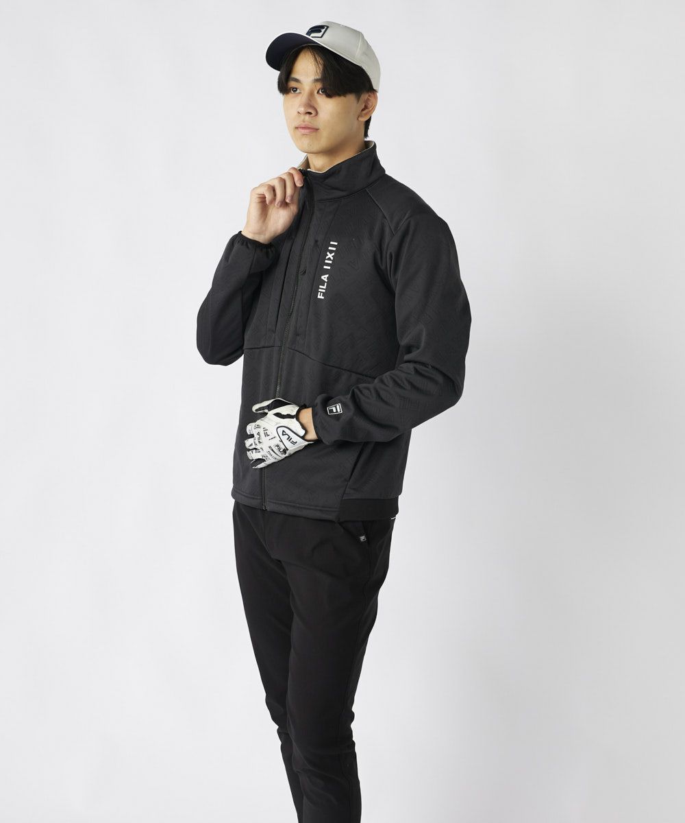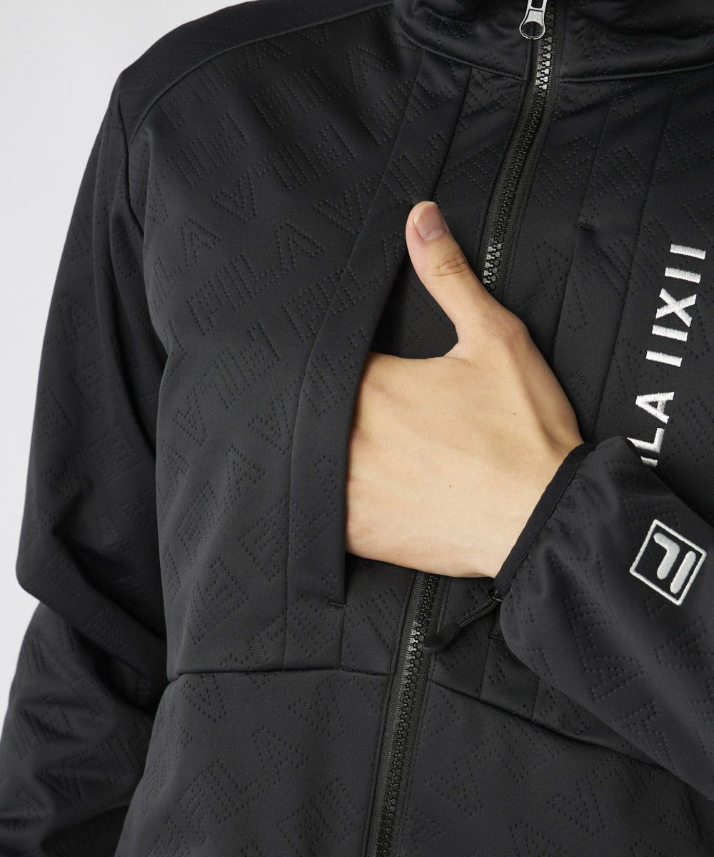 ストレッチ性の高いFILAオリジナル柄でキルティングを施した3層ボンディング素材を使用。外からの冷たい風を防ぐ防風機能と、体温を逃さない保温性を両立。ボンディング特有のハリがありながら、高いストレッチ性がダイナミックなスイングをサポートし、プレー中のストレスを軽減します。軽快で暖かい、秋冬に最適な素材です。