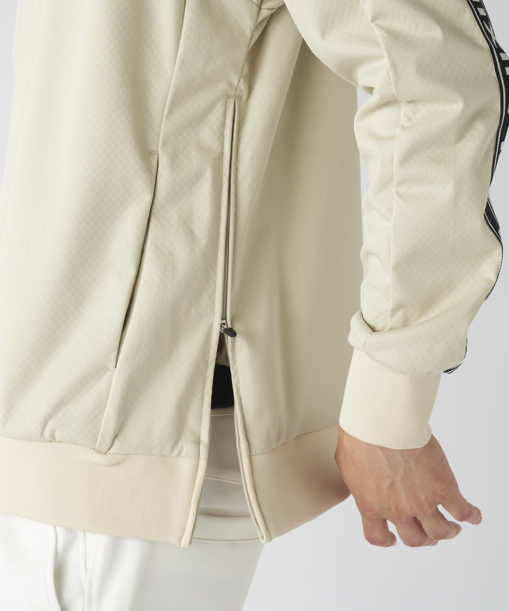 極薄素材に防風フィルムとメッシュをボンディングした**「ウインドガードライト」素材を使用。驚異の4WAYストレッチ機能で、ダイナミックなスイングもストレスなくサポートします。軽量性と確かな防風性**を兼ね備え、肌寒くなる季節のゴルフに最適な、軽やかに羽織れるアイテムです。