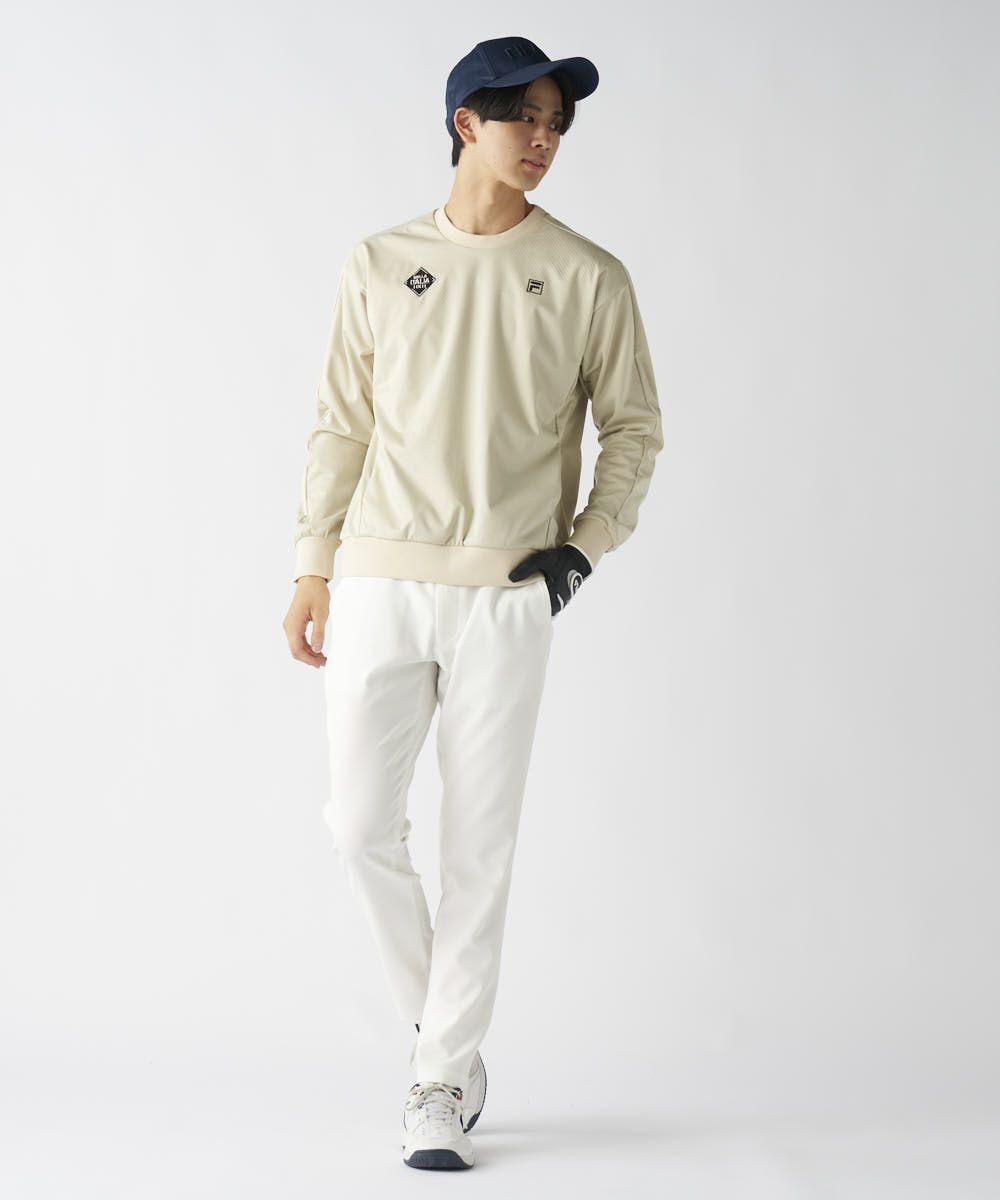 同素材のライトボンディングパンツと合わせれば、統一感のあるセットアップスタイルが完成。プルオーバータイプは、重ね着がしやすく、季節の寒暖差に合わせた調整も容易です。ファッション性と機能性を両立したこの一着が、あなたのゴルフスタイルをクールに格上げします。