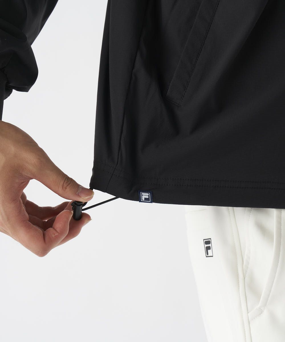 軽くて肌ざわりの良いツイル素材を使用。裏地はメッシュ仕様で軽い仕上がりになっており、着膨れせず一日中サラッと快適な着心地をキープします。高いストレッチ性がスムーズなスイングをサポートし、さらに撥水加工も施されているため、急な小雨や水滴を弾き、アクティブなプレーに集中できます。