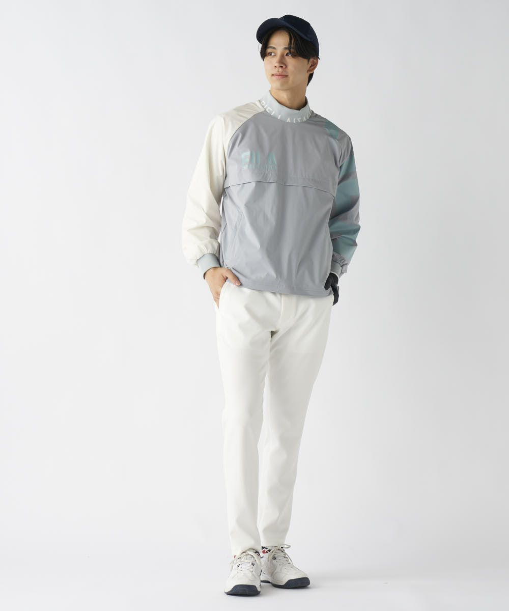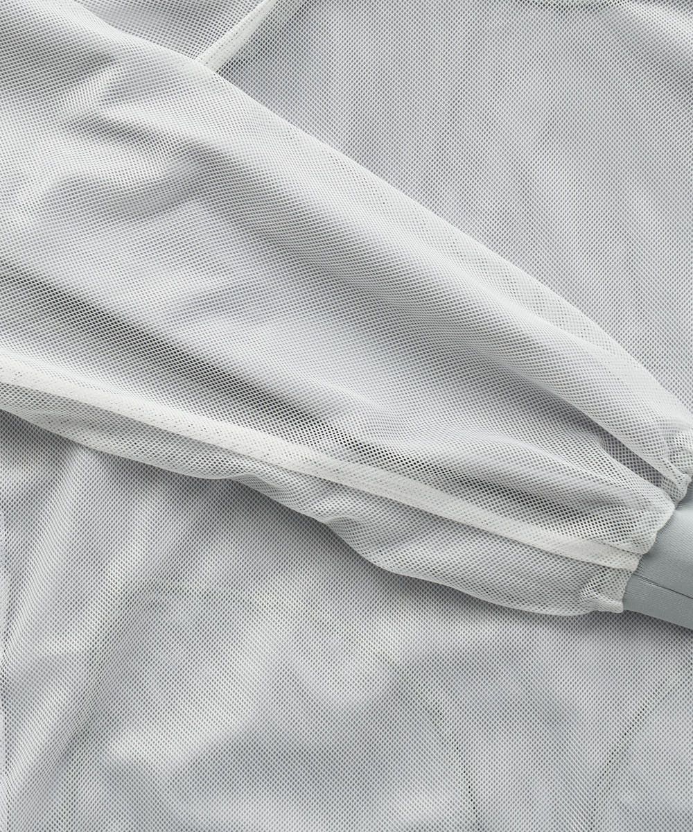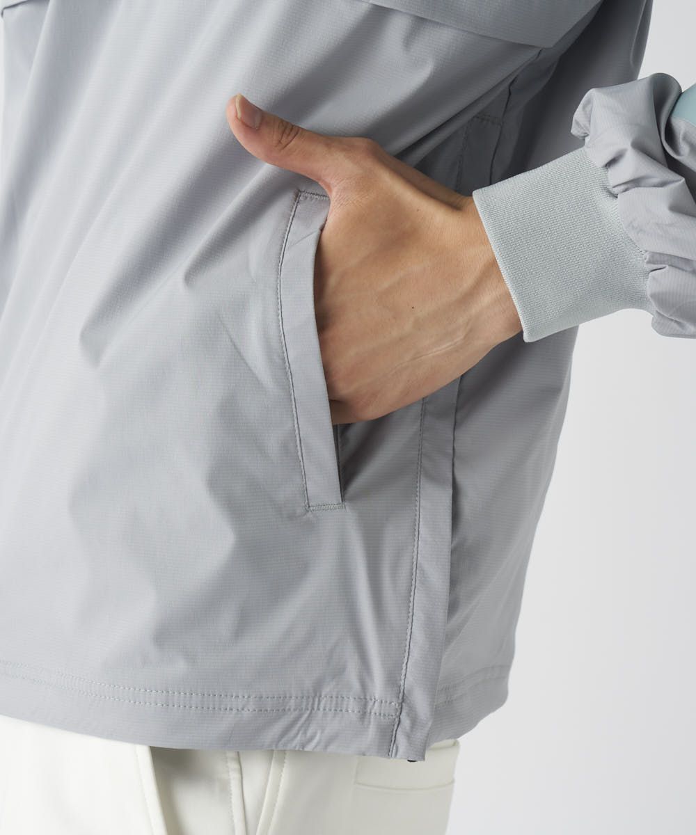 軽くて肌ざわりの良いツイル素材を使用。裏地はメッシュ仕様で軽い仕上がりになっており、着膨れせず一日中サラッと快適な着心地をキープします。高いストレッチ性がスムーズなスイングをサポートし、さらに撥水加工も施されているため、急な小雨や水滴を弾き、アクティブなプレーに集中できます。