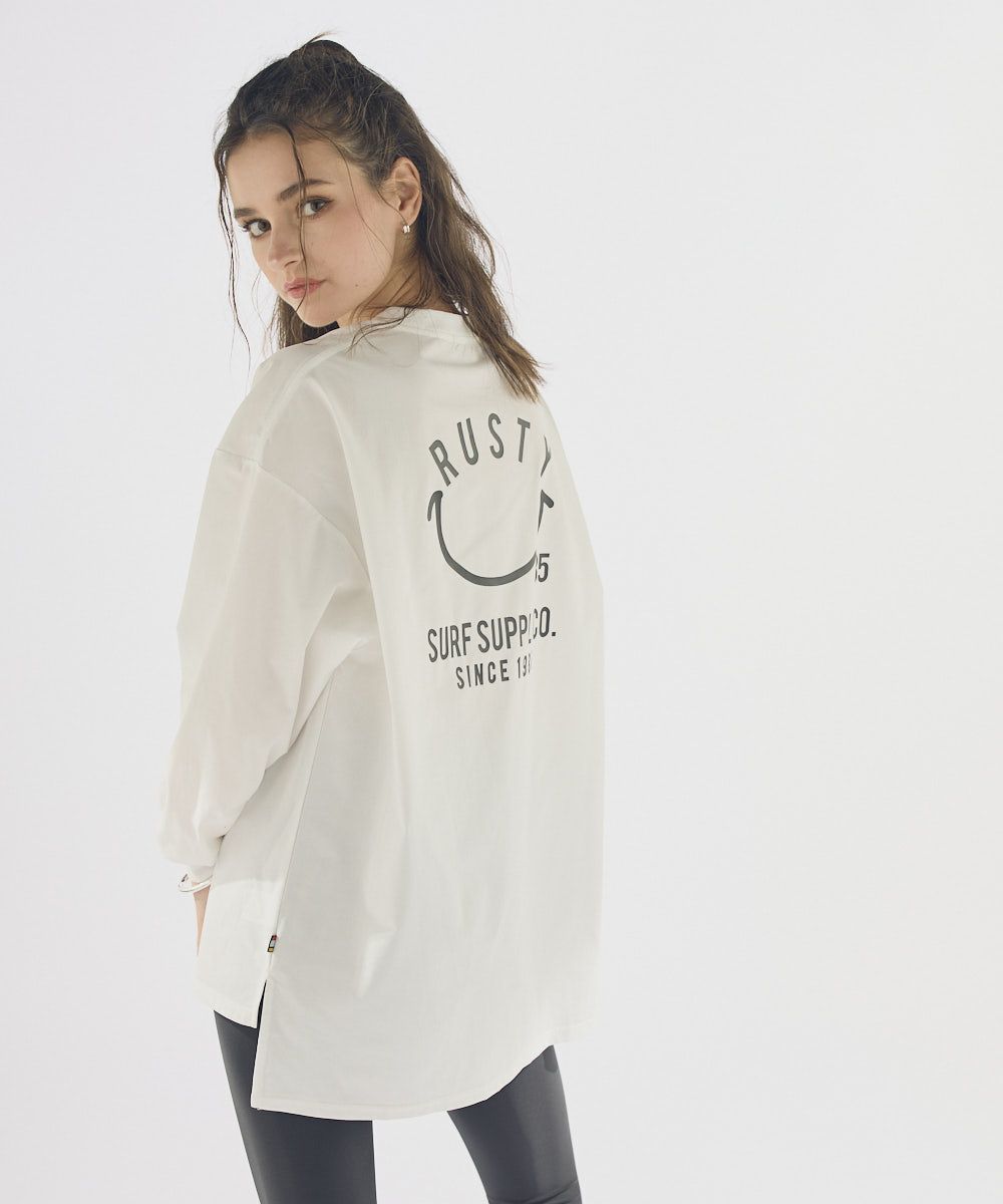 RUSTY/ラスティ水陸両用のニコちゃんロングTシャツ。