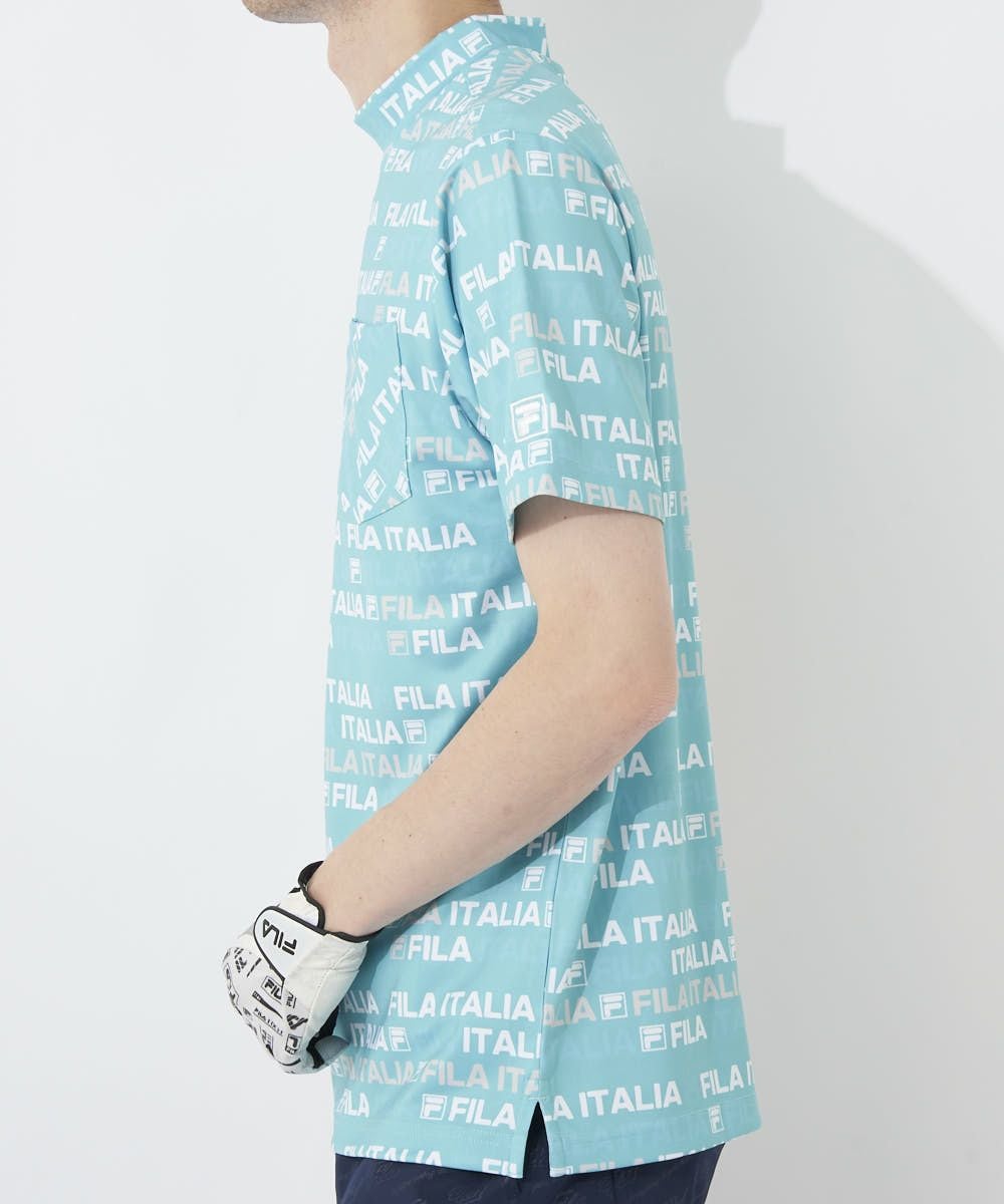 メンズ モックネック総柄半袖シャツ|吸汗速乾 / UVカット / 接触冷感