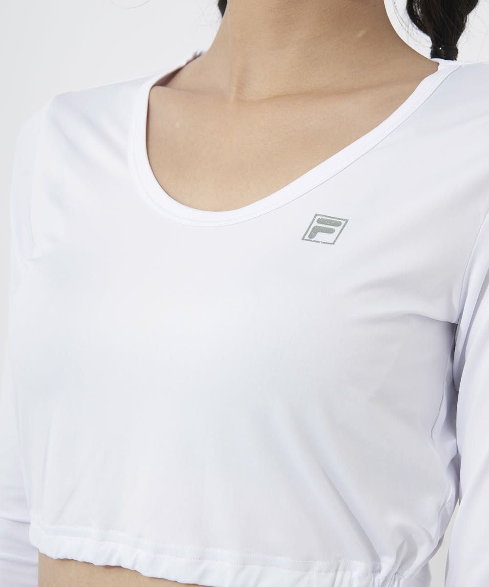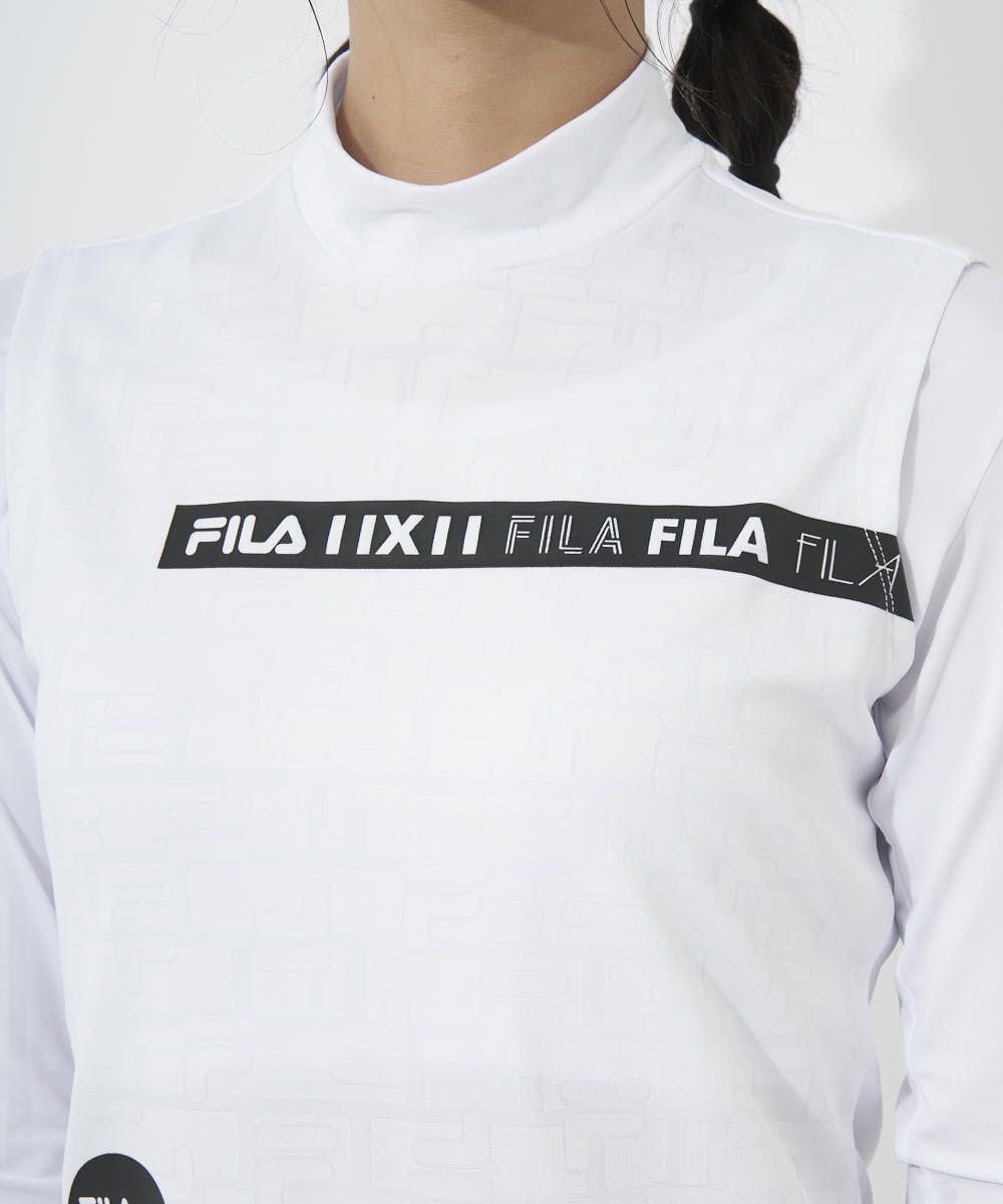 ラインデザインをアシンメトリーに取り入れたスポーティなデザイン。モックネックにはFILAのFをランダムにジャガードで表現したストレッチ性の良い素材を採用しております。