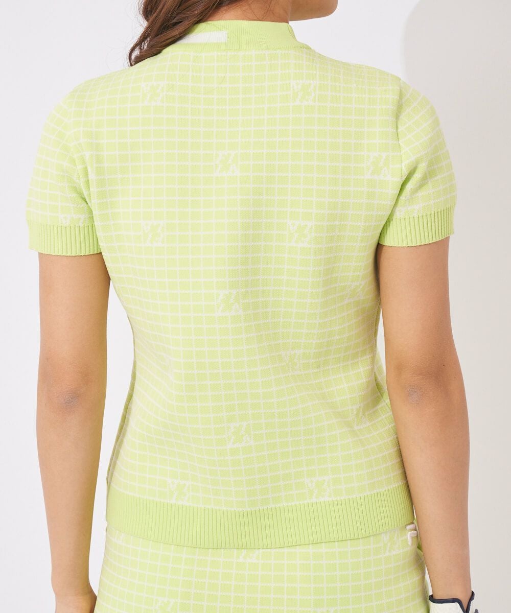 春先から活躍する、軽量のポリエステル糸を使用したニットのモックネックシャツ、衿部分にラインデザインを取り入れスポーティさをプラス。