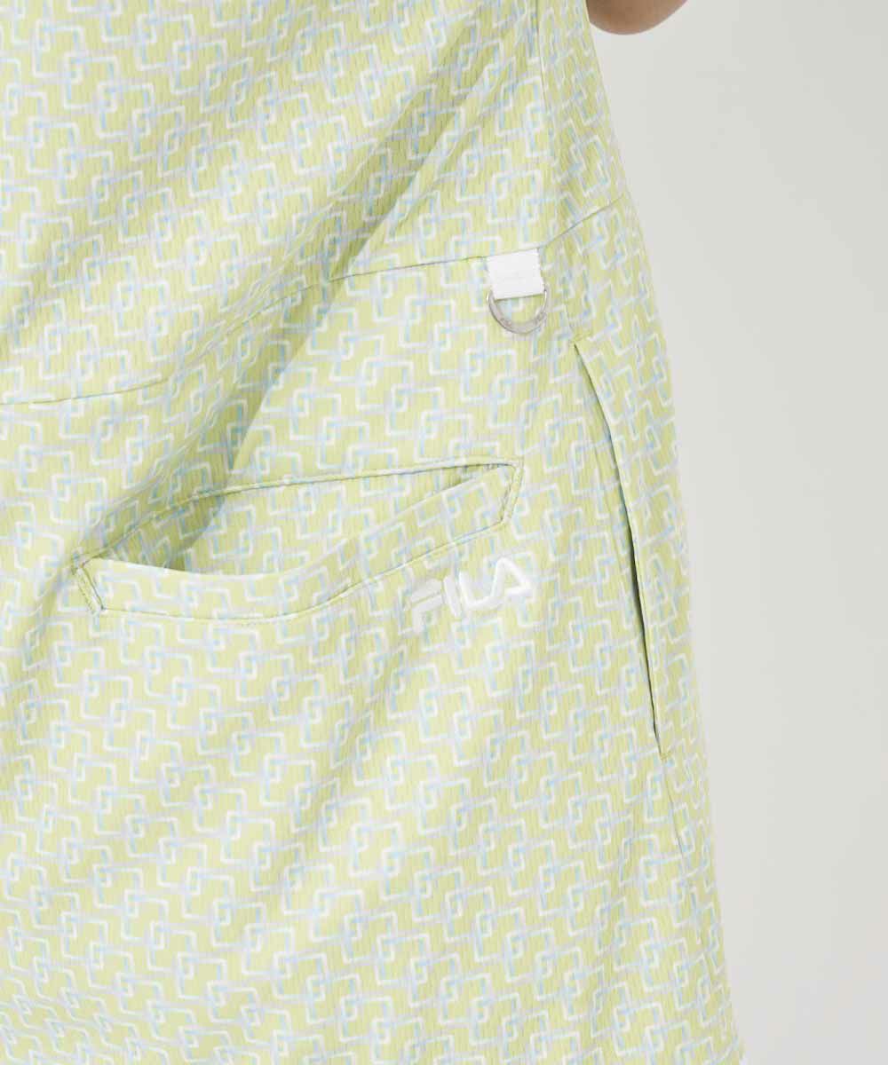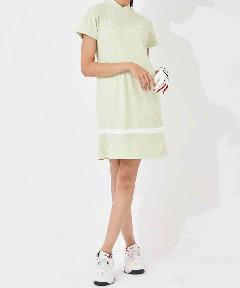 レトロな小つき柄をスポーティなデザインに落とし込んだ、変形モックネックのワンピース。スカート裾にプリーツを取り入れ、かわいらしいイメージをプラスしました。
