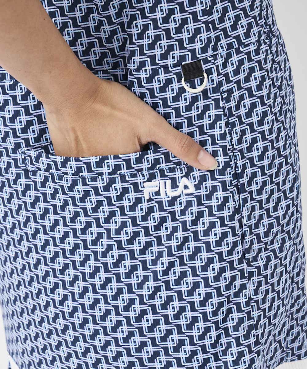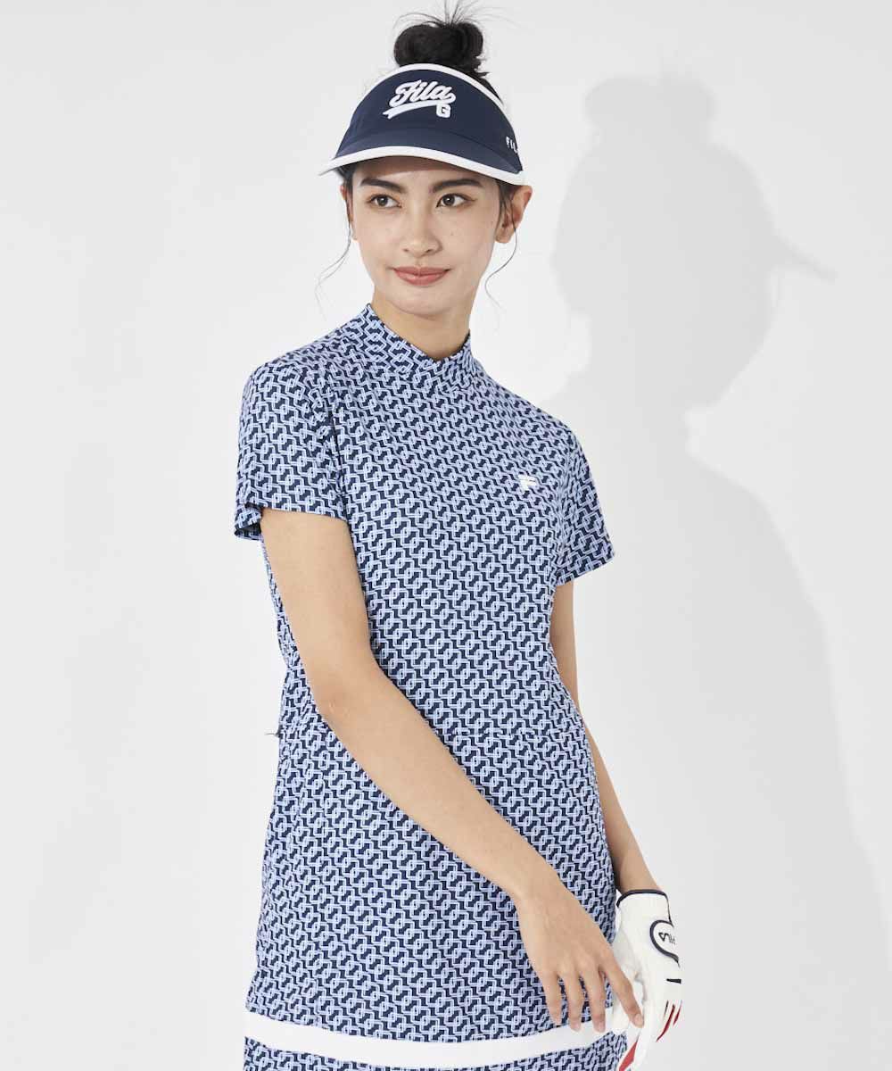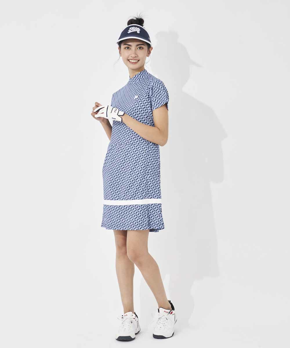 レトロな小つき柄をスポーティなデザインに落とし込んだ、変形モックネックのワンピース。スカート裾にプリーツを取り入れ、かわいらしいイメージをプラスしました。接触冷感、吸汗速乾でいつでもサラッとした着心地、さらにUVカットも備えた機能性素材なので、夏のゴルフも快適にプレーしていただけます。