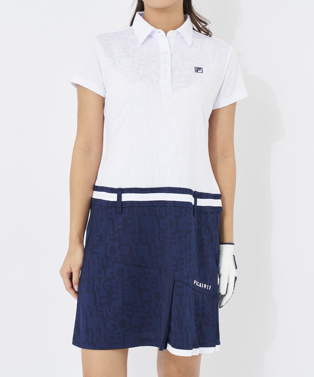 FILA GOLFのロゴをランダムにジャガードで表現したスポーティーなワンピース。