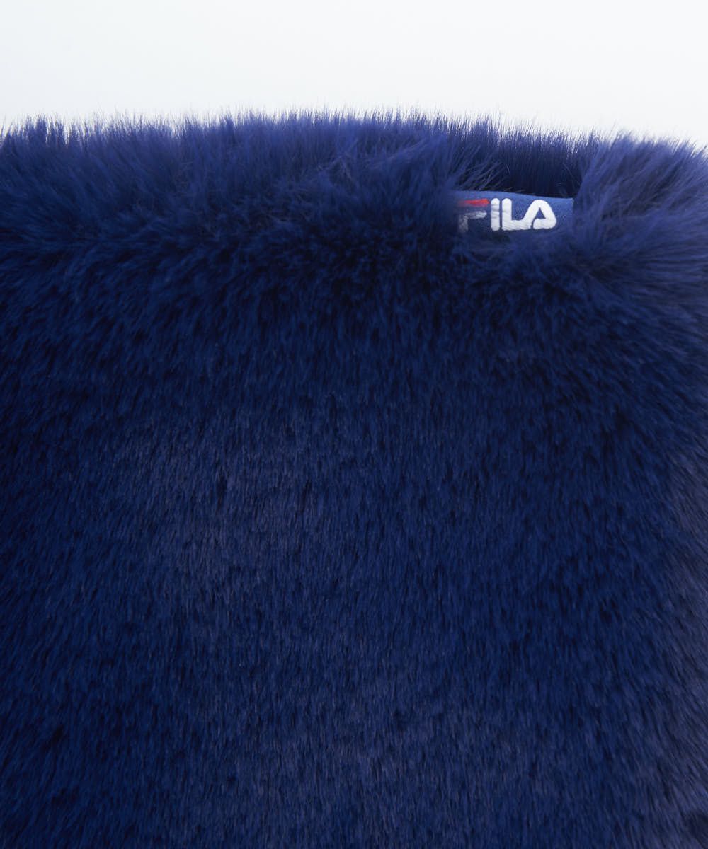 裏地がフリースになった、ふわふわフェイクファー素材のあたたかネックウォーマー。 テープ使いとウエアと マッチしたグラフィックがアクセントになっています。