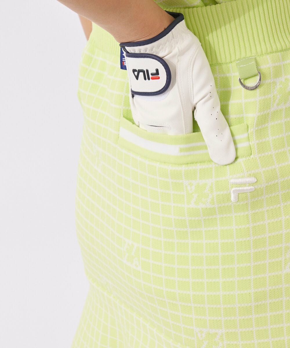 軽量のポリエステル糸を使用した裾がフレアになったフェミニンなシルエットのスカート。後ろポケット部分にラインデザインを取り入れスポーティさをプラス。