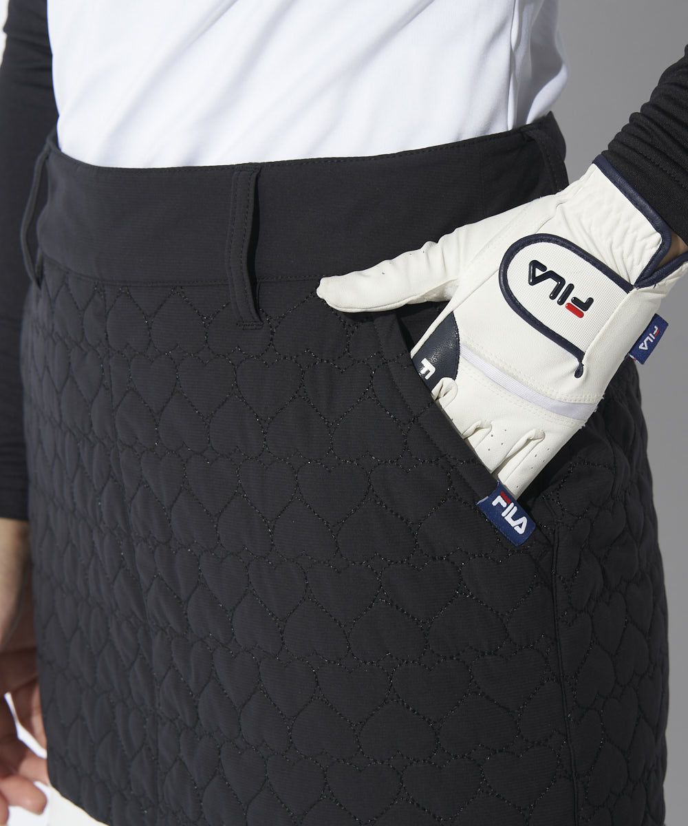 ハートのキルト柄がキュートな中綿入りスカート。裾プリーツ丈を短く設定。甘すぎない大人かわいいデ ザインです。794-261とのセットアップコーデがおすすめ。