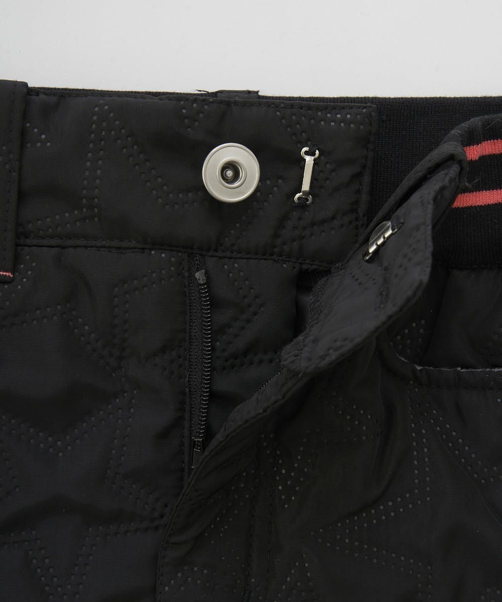 REPIPIの中綿キルトスカート。裏地は起毛トリコットで暖かく、ウエスト部分はゴム素材を使用し動きやすい一枚です。
