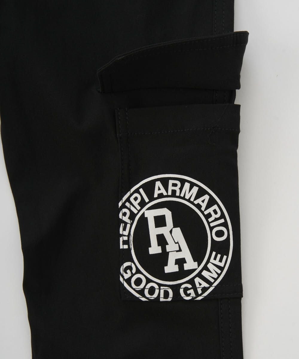 サイドポケットの大きなロゴがポイントのカーゴパンツ。どんなウェアにも合わせやすいシンプルなカラー展開です。