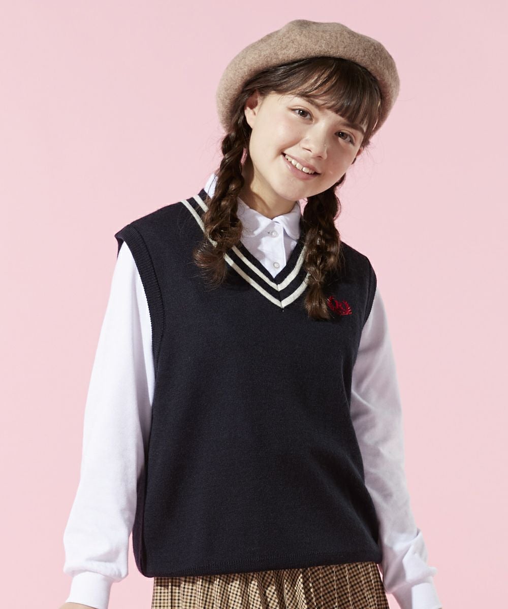 ふんわりとした軽さと暖かさを兼ね備えた、滑らかな風合いがポイントの女の子向けスクールベスト。薄手なので制服やジャケットの中に着ても着ぶくれしにくく最適です。学校の制服としてだけでなく、カジュアルにも着こなしやすいデザインです。