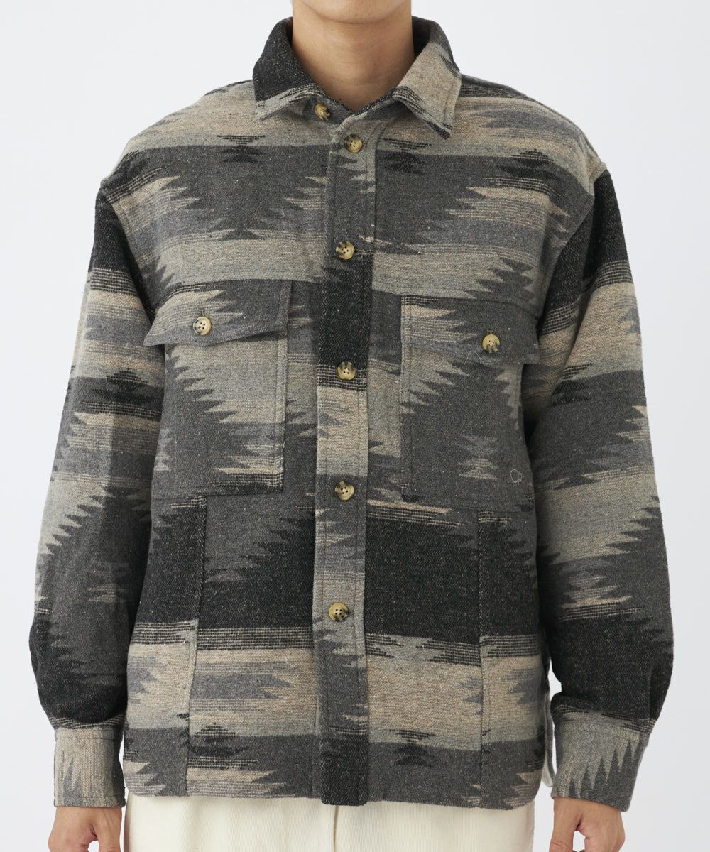 カジュアルなエスニック柄で大人スタイルを演出してくれる。温かみのある素材でこれからの季節に丁度良くジャケット感覚で着用いただけます!