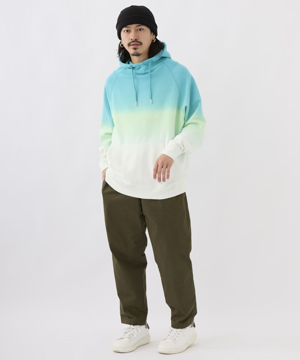 裏毛のプルパーカー。グラデーションデザインがおしゃれで存在感のある一枚。