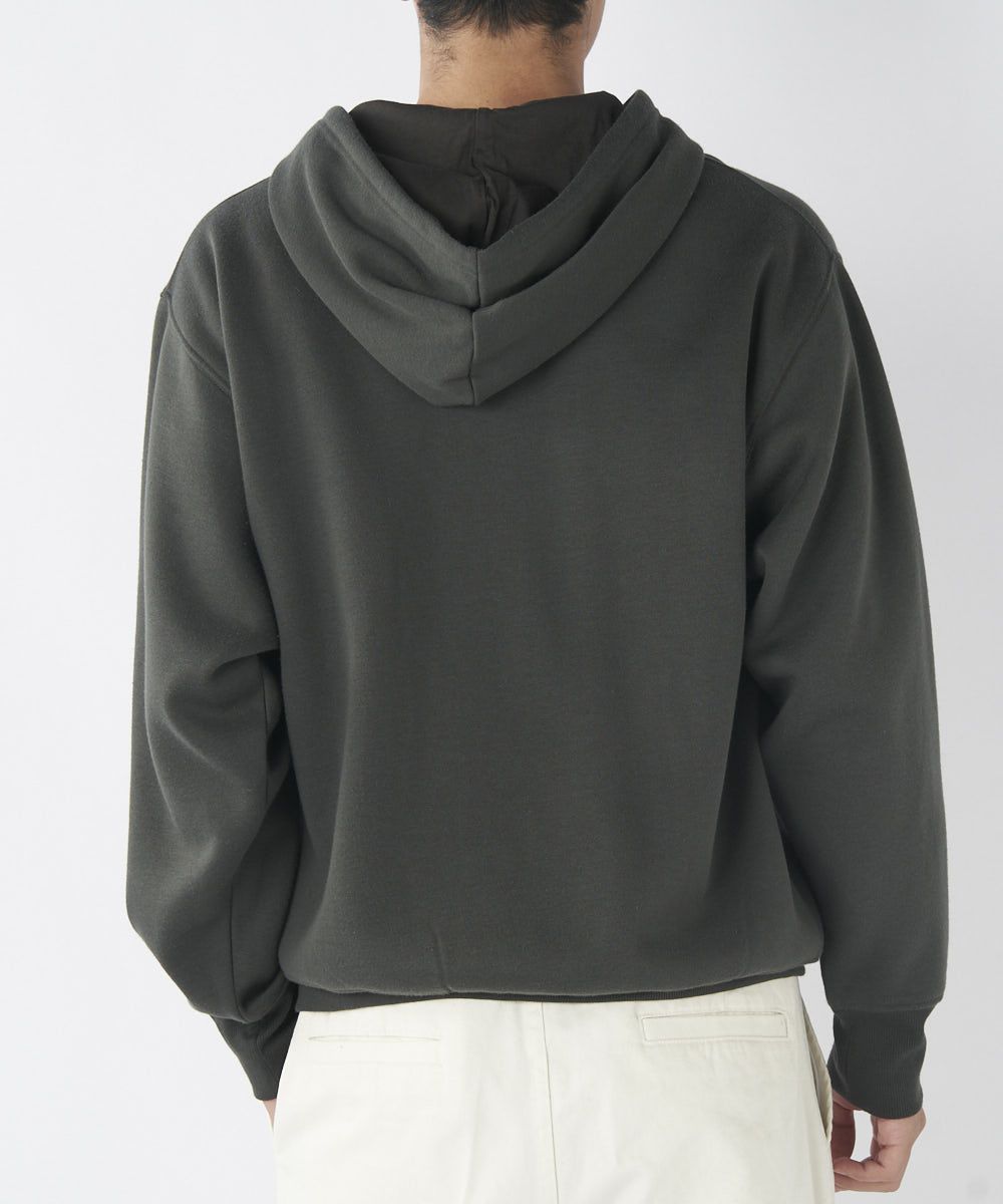 フロントに控えめなロゴがあしらわれており、カジュアルなシーンはもちろん、ちょっとした外出にも使いやすい一着です。