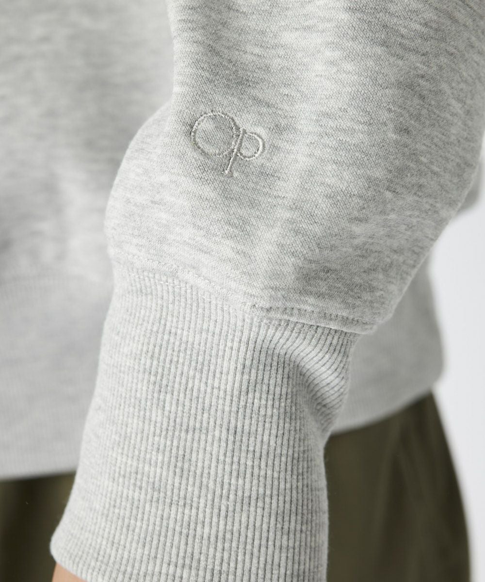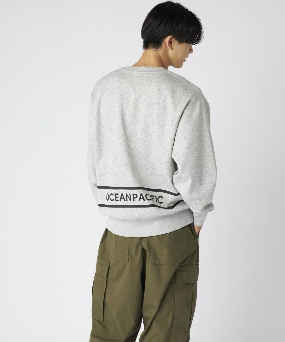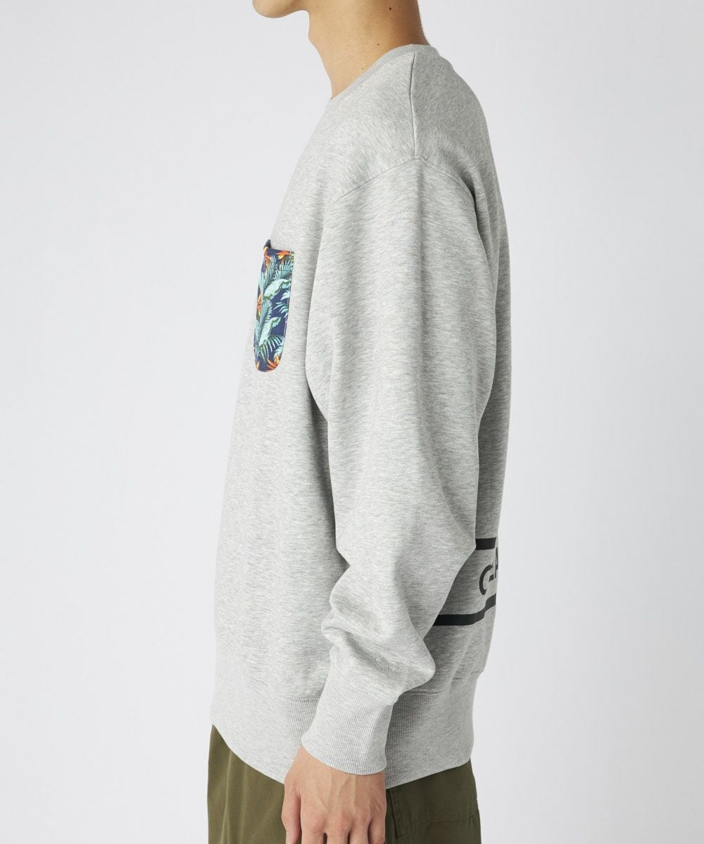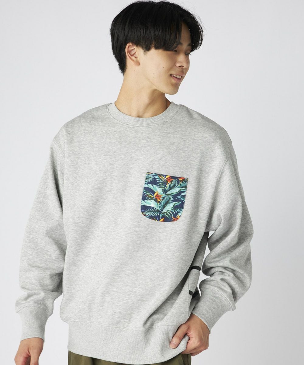 胸ポケットに総柄プリントをあしらった、遊び心のある裏起毛スウェット。