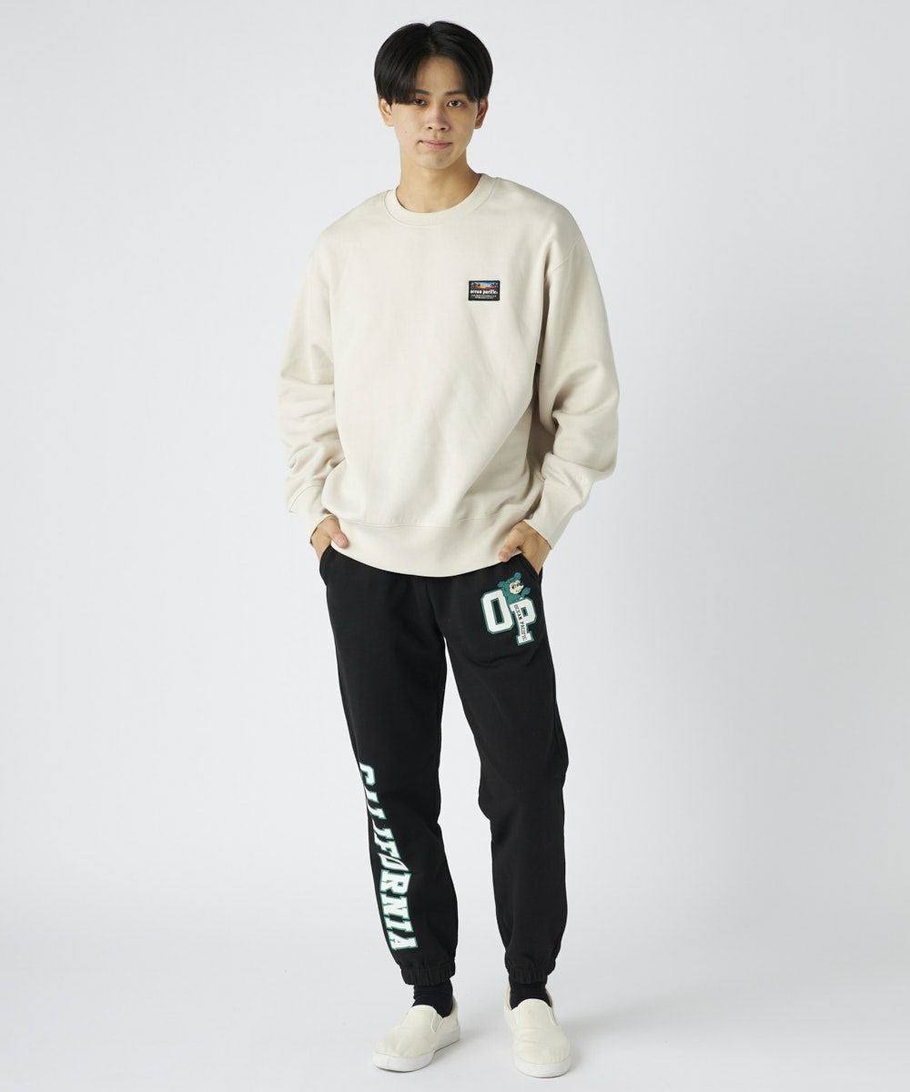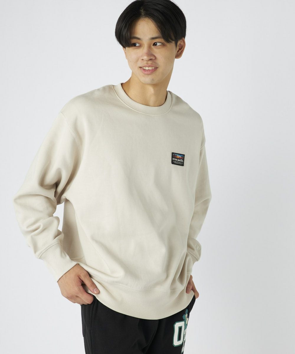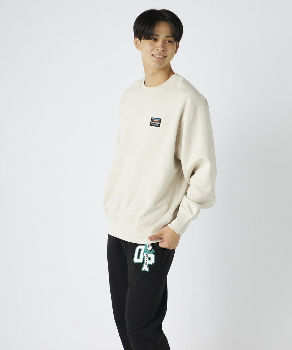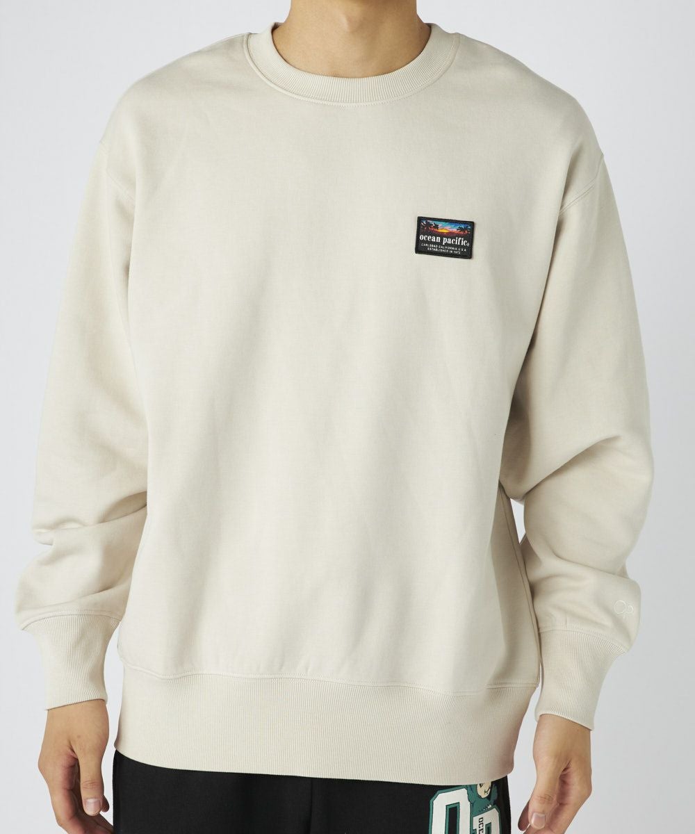 メンズ 胸ワッペン付き 裏起毛クルースウェット