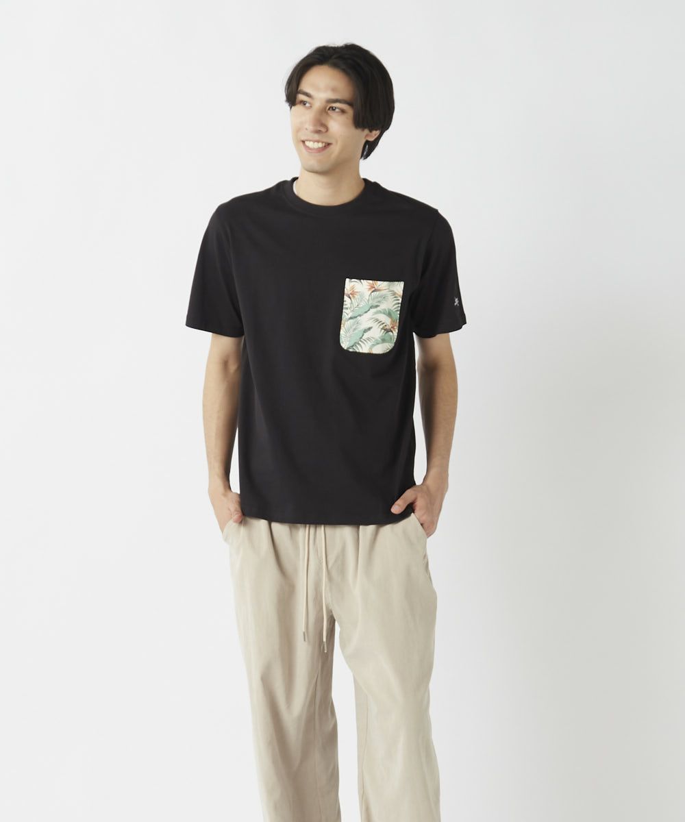爽やかなボタニカル柄が目を引くプリントポケットTシャツ。