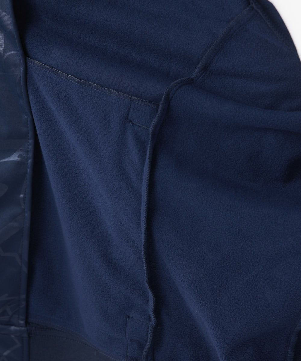 ストレッチ性のあるカットソー素材と裏フリース素材にフィルム加工を施した3層ボンディング素材を使用。