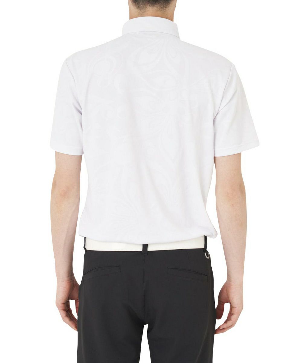 メンズ エンボス半袖ポロシャツ ホワイト 吸汗速乾 UV