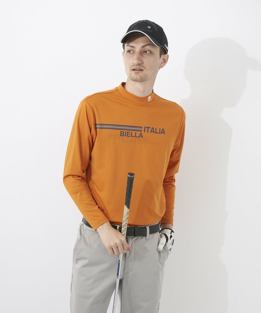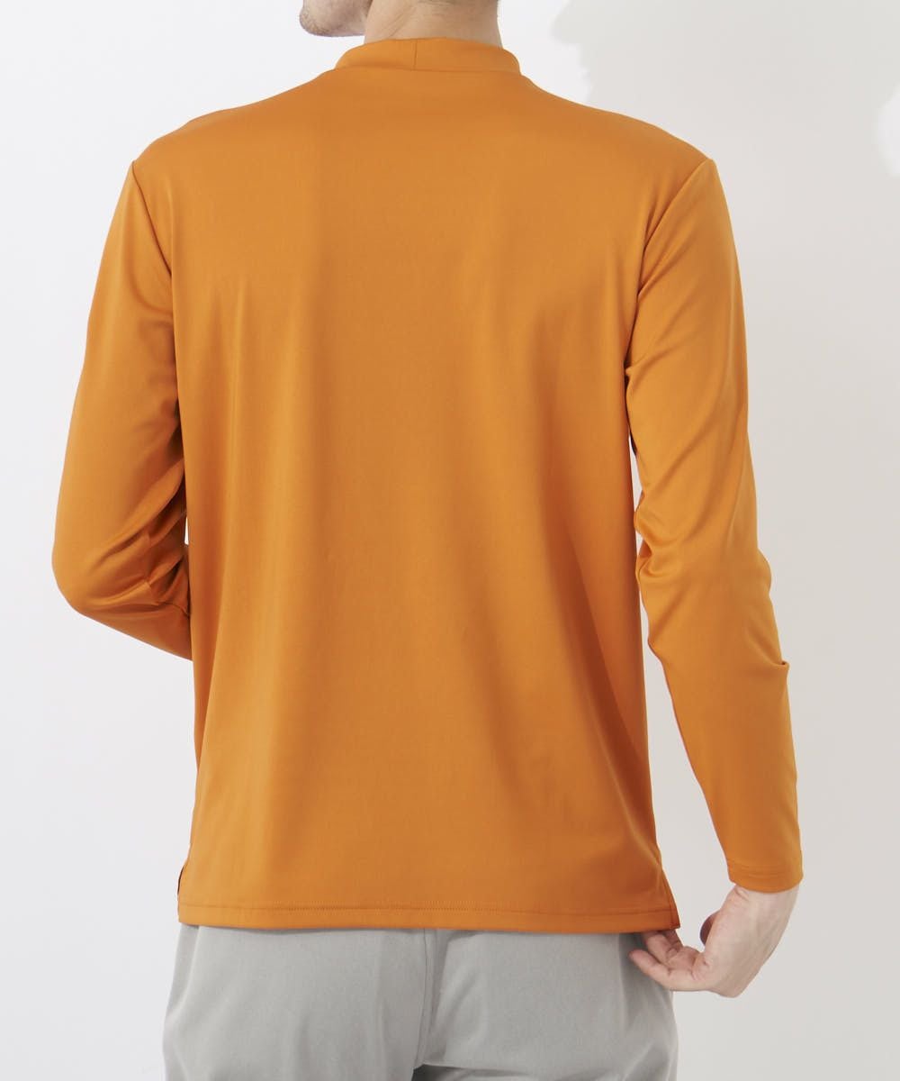 ストレッチ性のあるスムース素材を使用したモックネック長袖シャツ。一枚でも着用できて首元がすっきり見え るよう、衿巾は短めの仕様になってます。