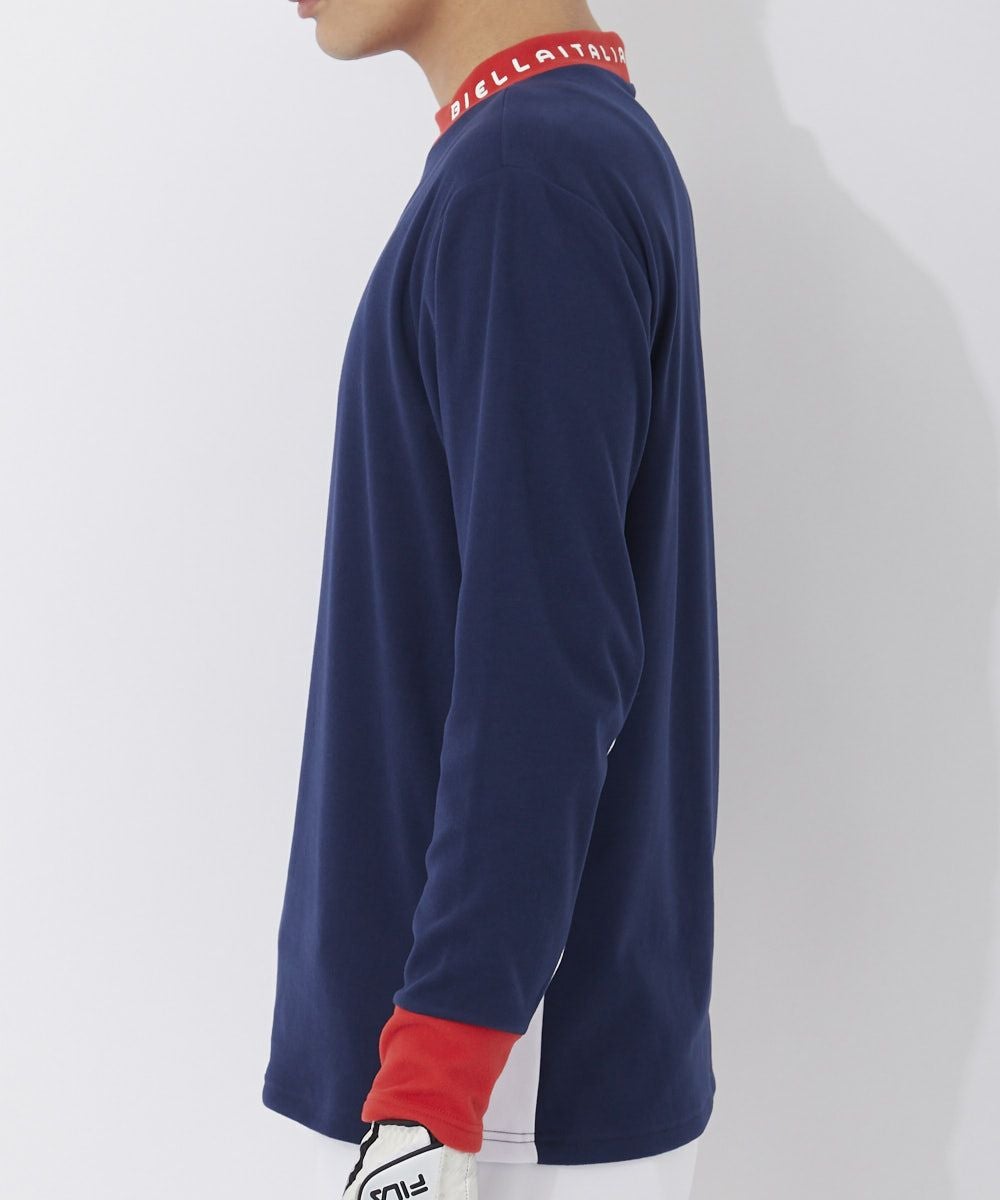 メンズ モックネック長袖シャツ