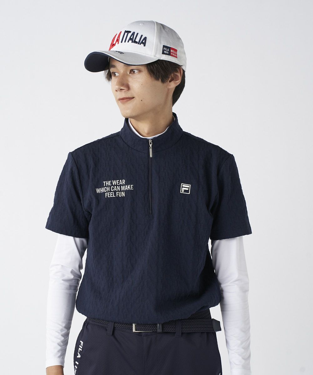 凹凸感のあるジャガード生地が、無地ながらも洗練された表情を演出します。ハーフジップ仕様は脱ぎ着がしやすく、スポーティかつシャープな印象です。インナーとセットで着用することで、一瞬でスタイルが完成する、計算し尽くされたデザインです。