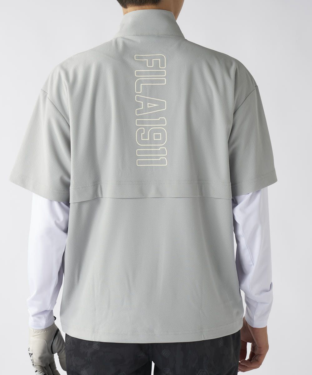 長袖インナーと半袖プルオーバーがセットになった、レイヤード風のデザインが魅力です。ハーフジップ仕様でスポーティな印象を与えつつ、ポップコーンジャガードの繊細な表情が上品なムードを演出。機能性とファッション性を兼ね備えた、FILAらしい一着です。