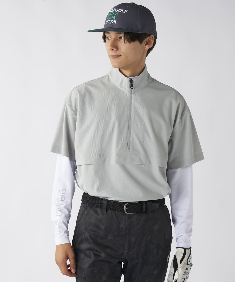 半袖プルオーバーには肌ざわりの良いポップコーンジャガードスムースを使用し、吸汗速乾とUVカット機能でアクティブなプレーをサポート。セットの長袖インナーも薄手ながら暖かく、寒い日のラウンドも快適なコンディションをキープします。