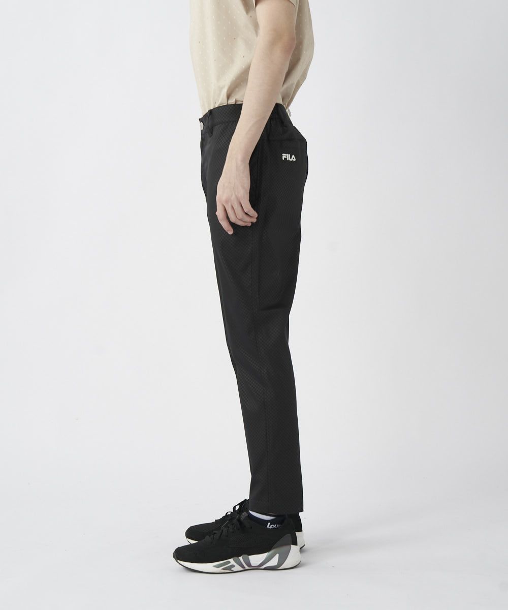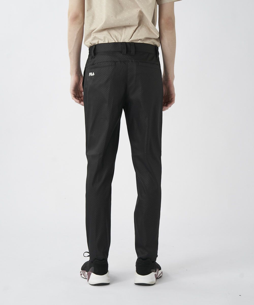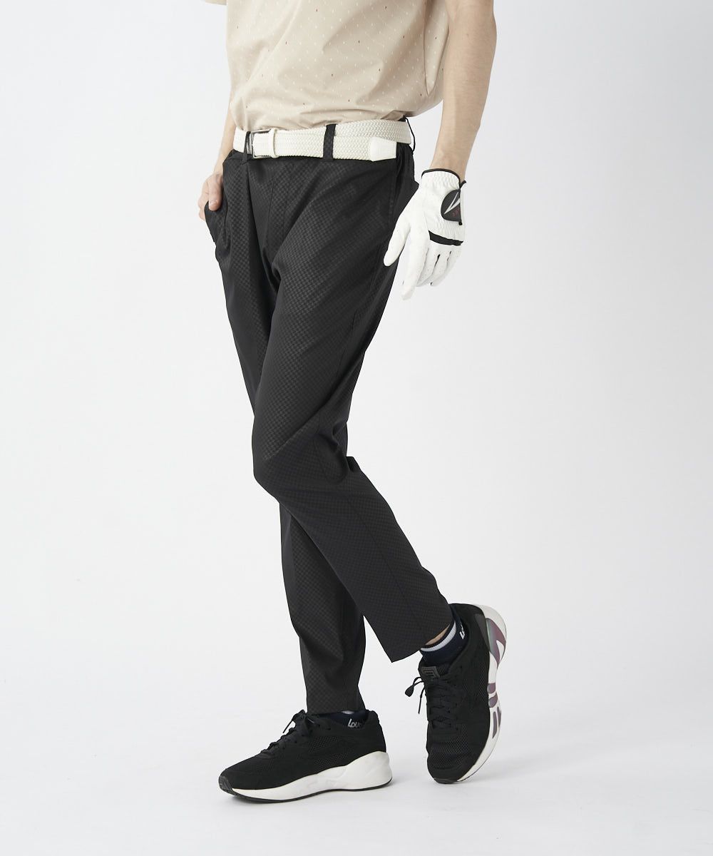 シンプルながらも細かな柄が施されたゴルフパンツで、上品で洗練された印象を演出します。