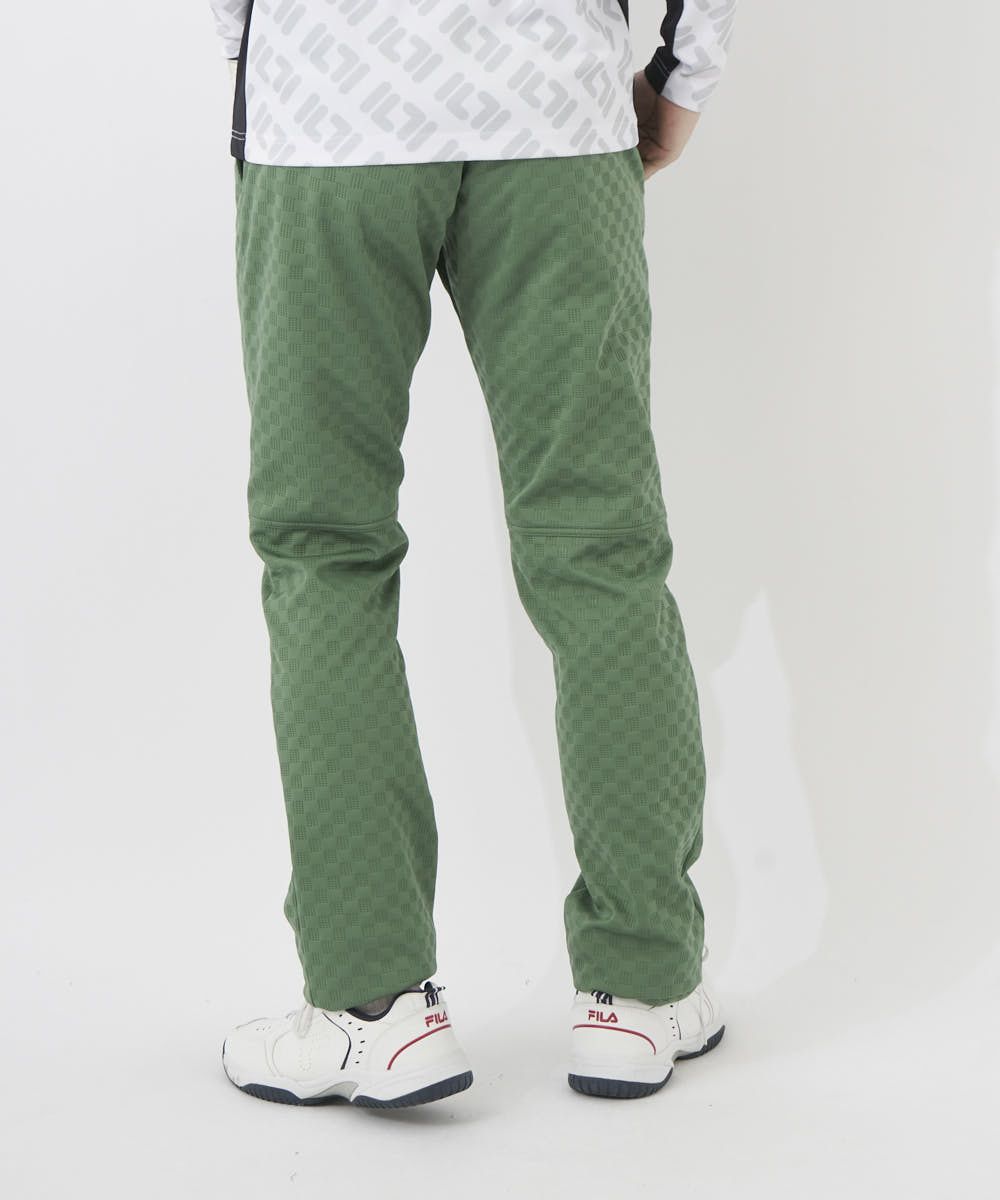 ストレッチ性の高い高周波キルトの3層ボンディング素材を使用したパンツ。細身のテーパードシルエット。薄 手の素材でゴルフのプレーに最適です。便利なDカンとシャツが出にくい為の腰裏に滑り止めが付きます。