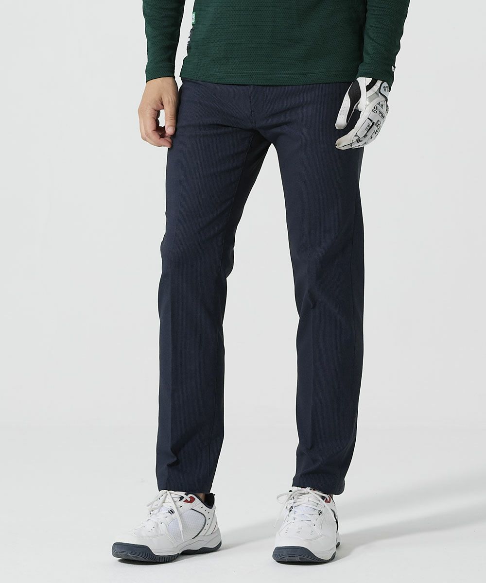 スラックスのようなすっきりとしたシルエットで、ゴルフではもちろんビジネス・カジュアルなど普段使いもしやすいデザインに◎。